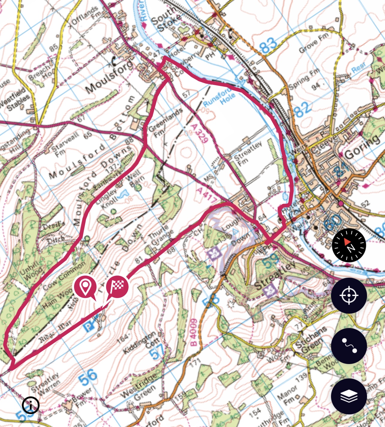 Some lavish houses back on to the river as we start this stretch and a little help is needed with the path at first before the route settles a bit. Interesting to see from the other side having walked the Ridgeway path on the other side of the river, back in January.