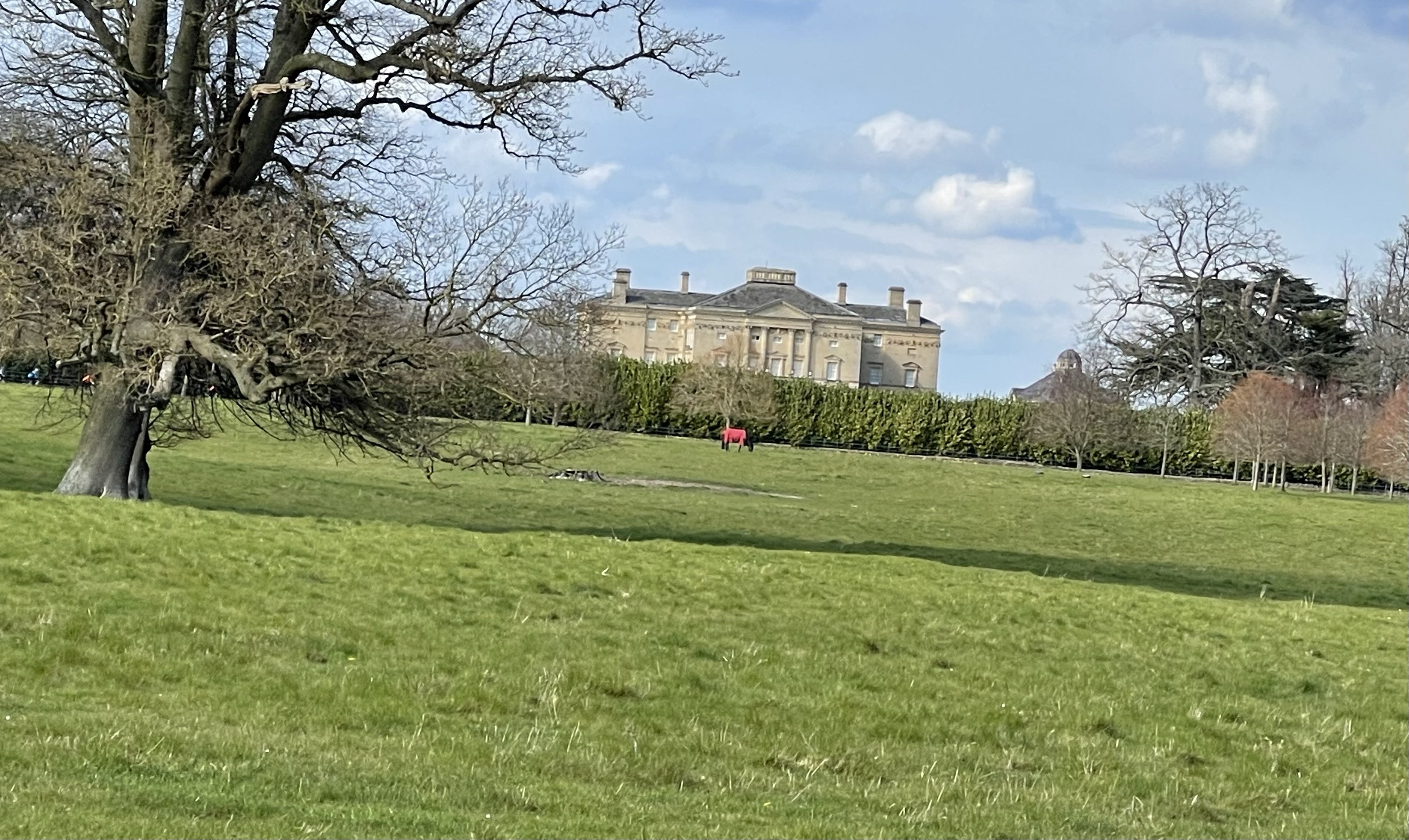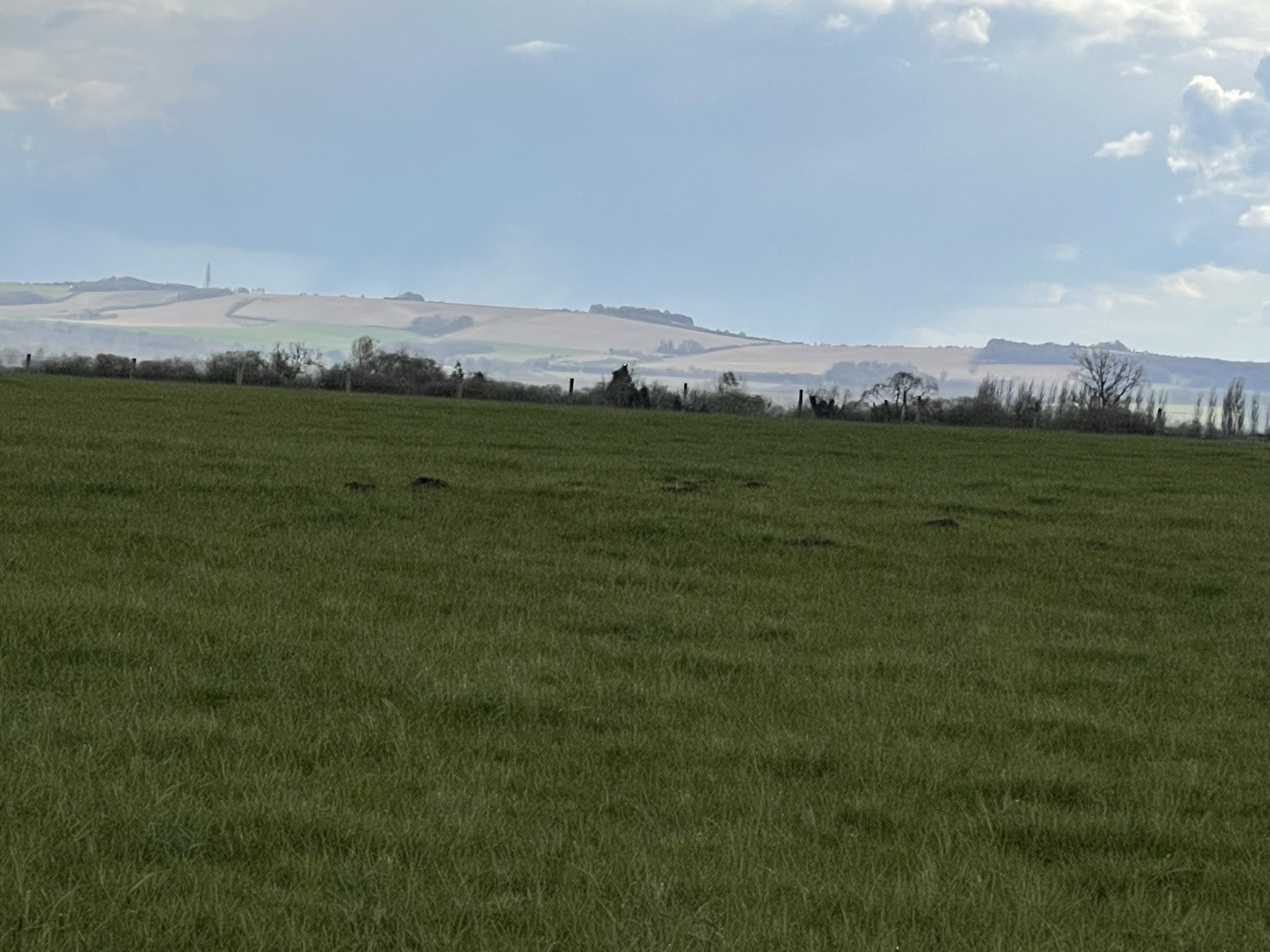 Having had an enjoyable walk around this village , the sun was out and by now reasonably warm, it was time to go back over the main road and head for the very small village of Pusey. The path meets the road opposite the main gates to Pusey House and as I go round the corner I’m aware of the house and lake with a haha like boundary. I’m now heading back to Charney but looking out I’m afforded magnificent views of the Ridgeway again. Somebody has parked to take photos and on chatting it appeared that she felt compelled to do this even though she lived close by.