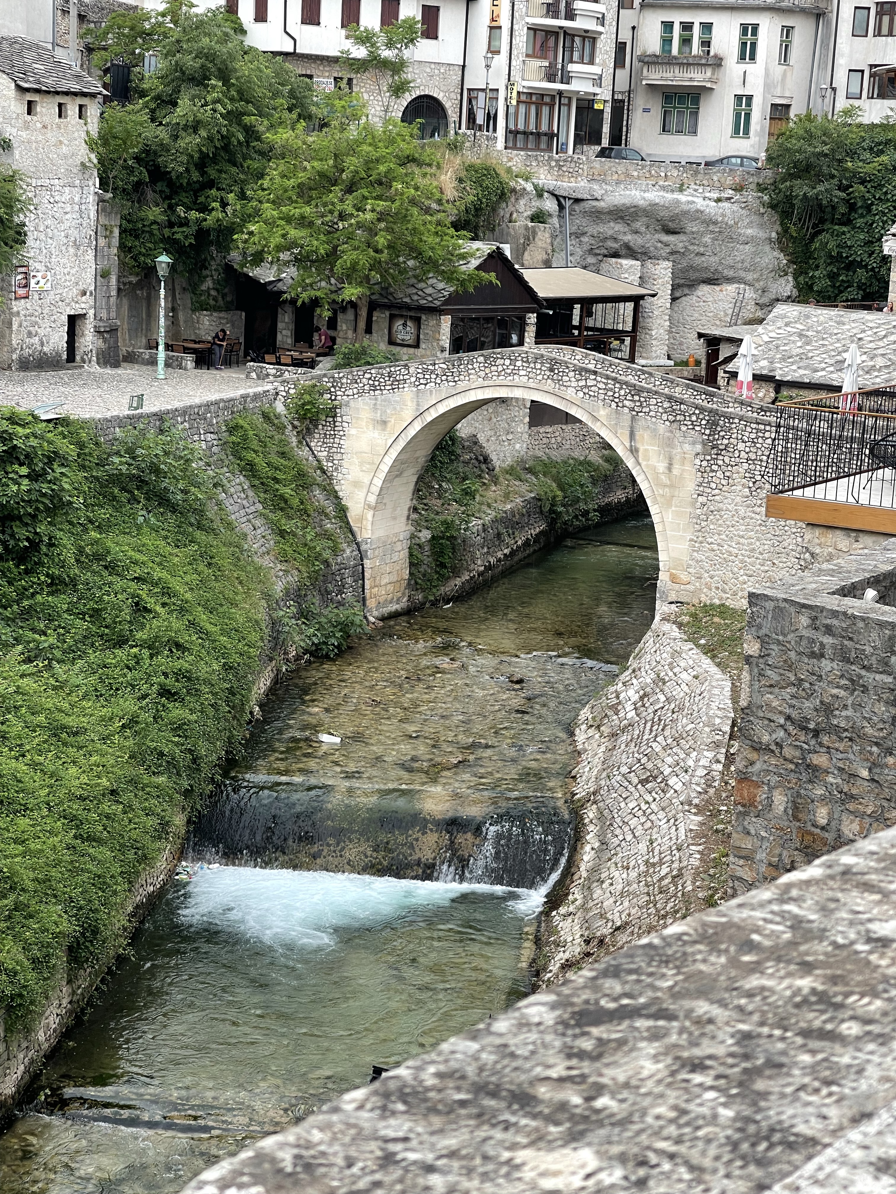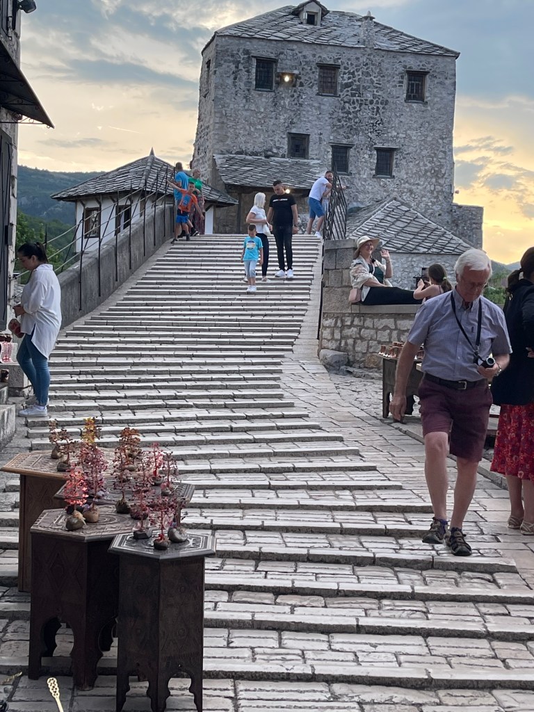 After the city had been besieged for several years during the Balkans War 1992-95, attention was turned towards the wider world – Jeremy Bowen was filmed running across the bridge not long before this wonderful piece of architecture, completed in 1566,was shelled so that it collapsed. It was at that point rather ironically that the rest of the world began to take more note as to what was happening.