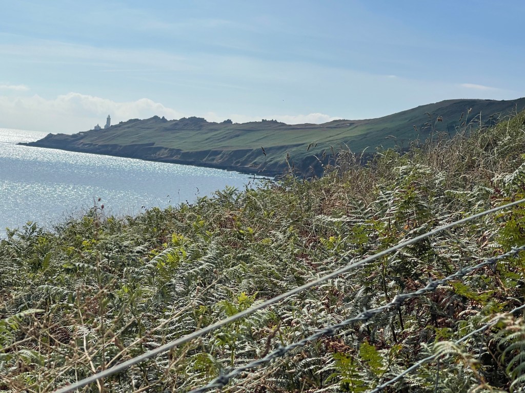 This car park serves two major purposes – for those wishing to see the lighthouse and for those wanting to follow the path down to great Mattiscombe Sands which is perhaps just over a kilometre away. This is familiar territory and that’s a great feeling. We often used to walk down to the beach on one of our holiday days and if I got my way, which didn’t always happen we would walk back along the cliff path, which is the way I’m now about to go. I did persuade my children and their partners to go this way to the beach last year! The path sets off from the car park down the road to the lighthouse and is lined with a substantial wall on the sea side, probably useful as there is an extensive drop! A good place to look back and see how far I’d come and check on whether my pace was appropriate.