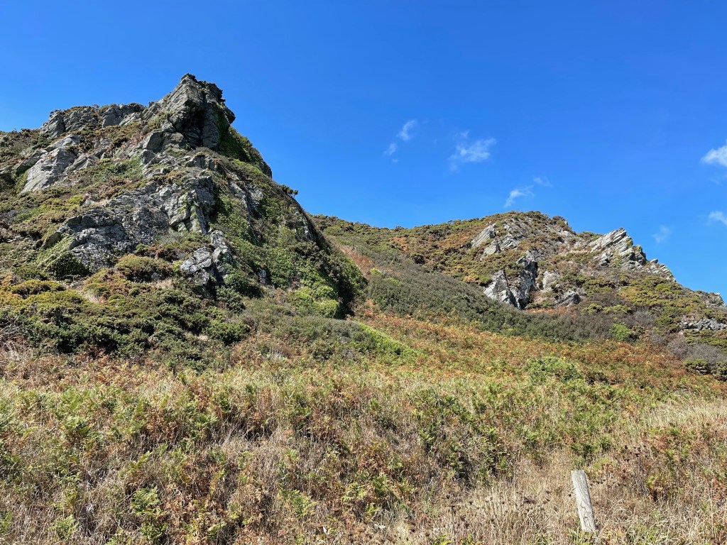 From Lannacombe the path winds slightly up hill around the side of one hill before dipping into a small valley and then contouring round a much rockier outcrop- Woodcombe point. Here the path turns almost to a scramble in places and rather than the even tracks found for the last stretch this is somewhere where more concentration is needed.