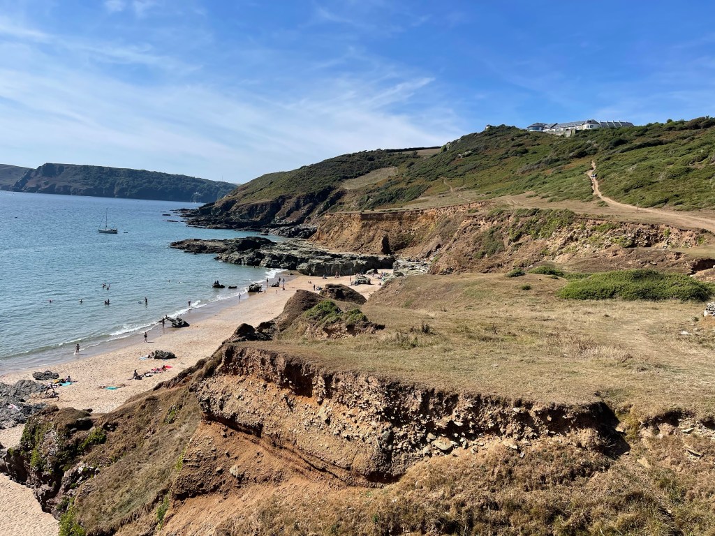 I’ve walked bits of the next section before but only usually in short stretches. The path keeps close to the edge but is often quite shrubby and then around the edge of fields. It crosses little streams which are much drier than normal. And the next significant point is Lannacombe Beach, another delightful spot but with narrow roads leading down and minimal car parking only a good choice if you could set off early and the tides were in your favour!