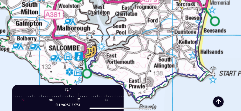 A day on my own today and planning to do quite an epic walk. Much looking at bus timetables to help work out the direction of travel and timings of the last ferry as well. It will be a coastal walk again and although I have done a few stretches along this part of the south west coast path, I have never contemplated this whole stretch before. Again the map at the beginning to see the route .