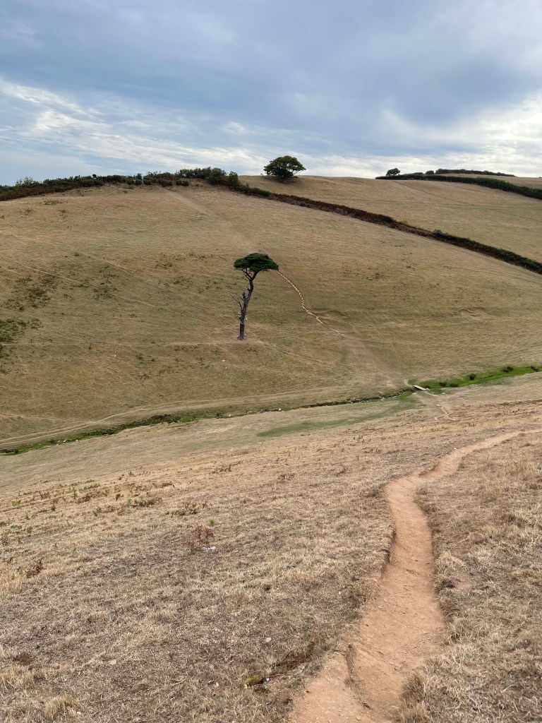 Again I’m further away from the edge of the sea than I was yesterday and I have to once more dip down to the main road. Well the next section was interesting- I’d seen this distinct path from the road which went very steeply down and then immediately up the other side of a V and I did wonder. My thoughts confirmed as the finger post pointed the way. I met a family who had just reached the top by me and we exchanged a few views on the extremity of the path. And I set off, this photo doesn’t really show the steepness!