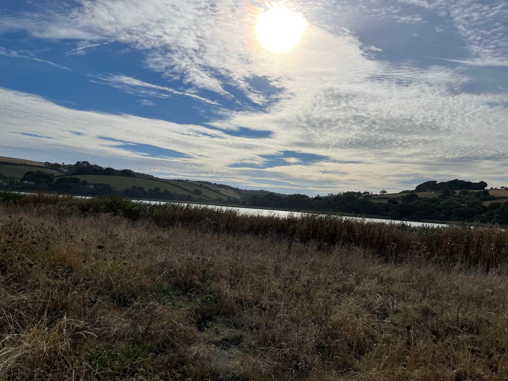 This is a strange area as there is a really long stretch of pebbly sand rising quite steeply up from the sea, then the road and the coastal path ran parallel to this but next to Slapton Leys, a large stretch of inland water and a nature reserve. Quite a good place to walk but quite Sandy. Good sky though.