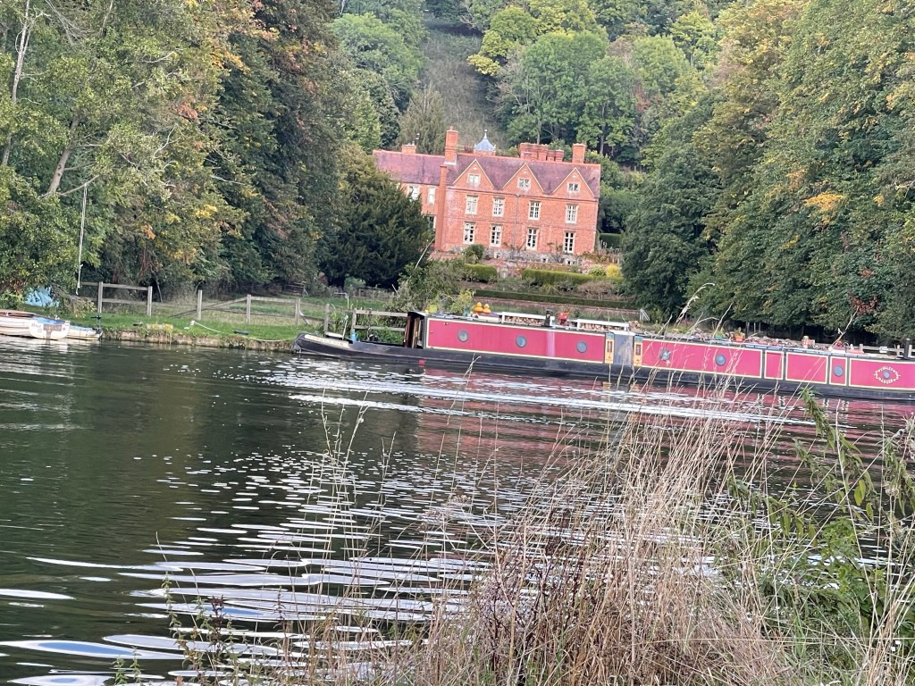 A quick break at Goring, Richard suggests we stop at a rather good little cafe which has never been open when I’ve been here before and we are tempted with carrot cake to share between us as well as drinks. Then a slight detour to see George Michael’s house, Fiona was a fan and we are back on our way beside the river. We do manage to look over at the back of the house which has a great garden leading down to a small backwater. This section is starting to feel a little different.