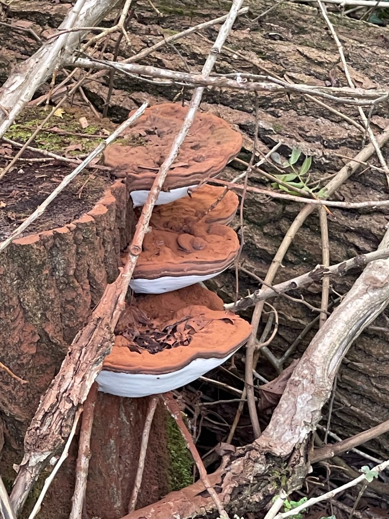 The path closes in again and we are bordering the grounds of Reading Blue Coat School. Obviously good growing ground for this bract fungus.