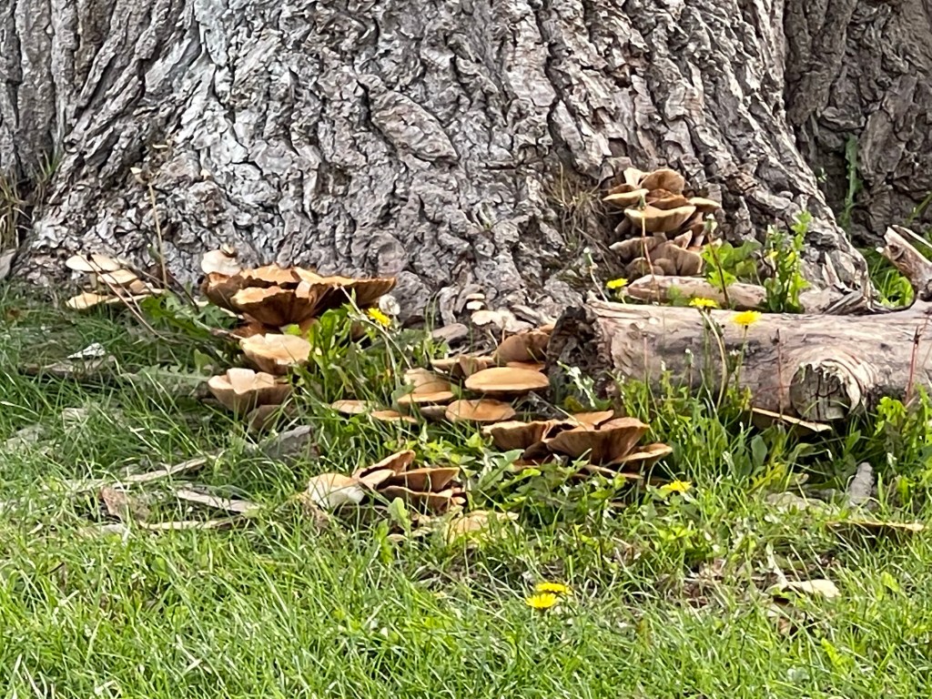 Pleased to be back by the river , we did step out onto the bridge but unfortunately it’s blocked half way. About twice as far round. We are running a little bit late, although we had said after 16.00 to meet. A bit like in Reading we are now in a popular area which you might again call a promenade. Some brightly painted barges with contemporary geometric designs and lots of people. We walk past the River and Rowing Museum and on towards the old bridge. Jane is waiting the other side of this but we have a little way to go yet. Almost out of context in this parkland like area I spot these fungi and up ahead a view of Henley.