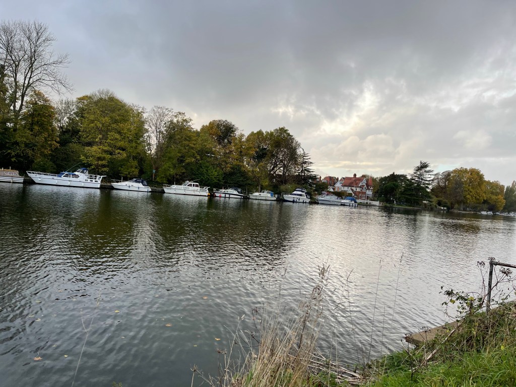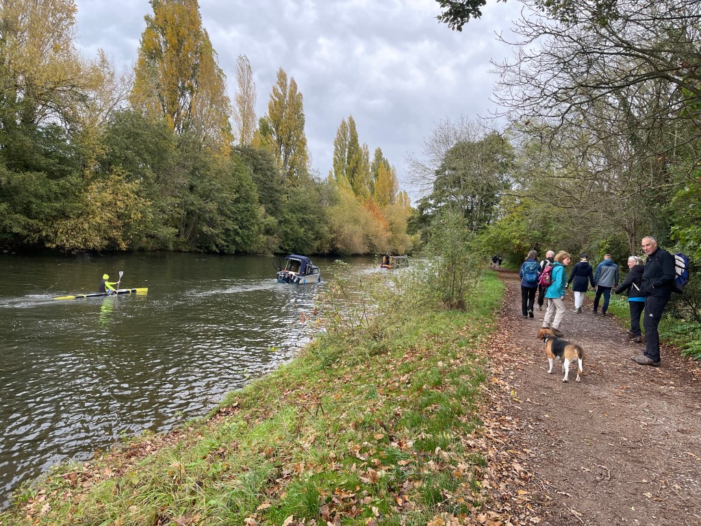 Not sure the weather is going to be quite so kind today, as long as it doesn’t rain! We start with a great deal of open ground next to our path and lots of people out for Sunday morning walks and a variety of boats on the river.