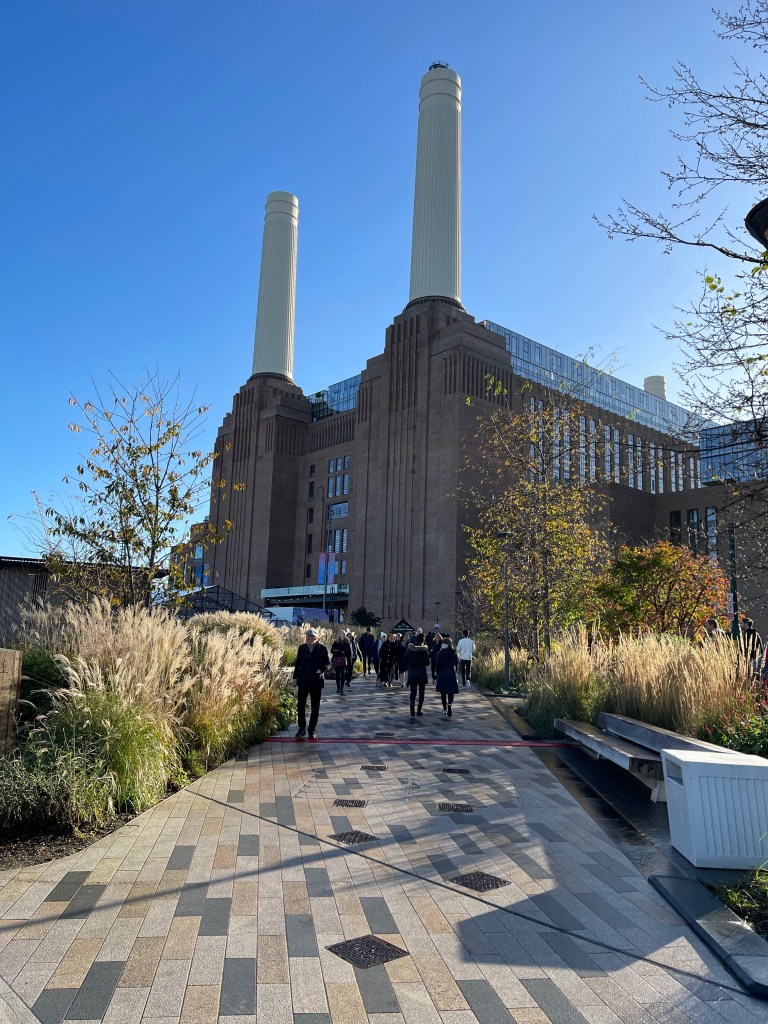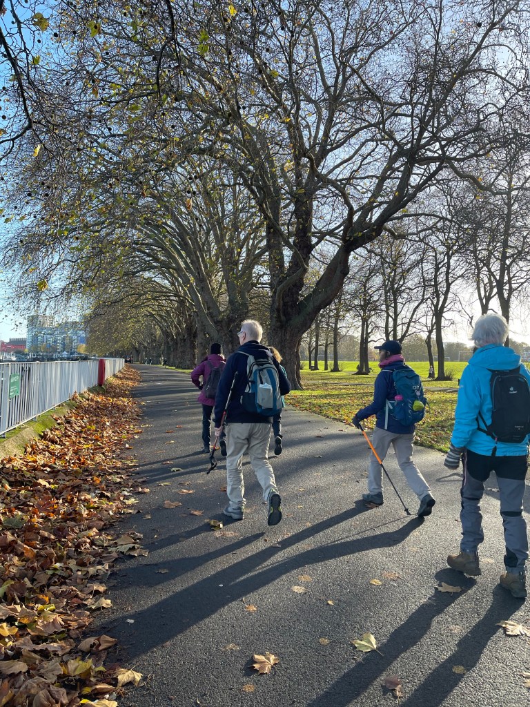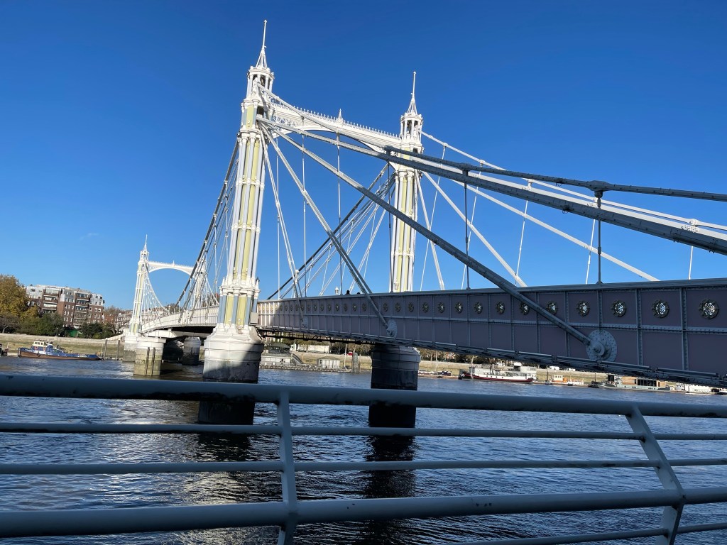 We continue round as we approach Albert Bridge and can just begin to see the iconic towers of Battersea power station on the horizon. On our side we have Battersea and across the river Chelsea, areas change in popularity and prestige. Albert Bridge looks splendid as we approach the edge of Battersea Park. Comfort stop needed so I google public toilets and some of us divert to a parallel path in search – by the zoo but not 5* !