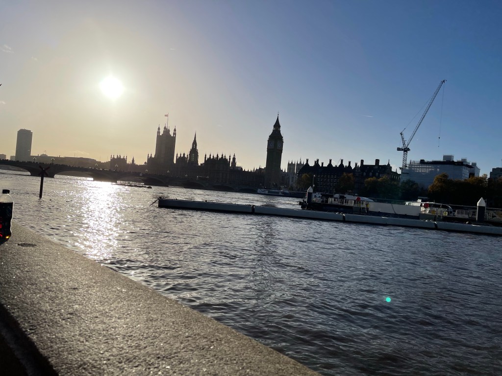 Going over Westminster Bridge onto ‘Southbank area’ was quite an experience, amongst them a feeling of being dressed inappropriately for the time and place! Christmas Market stalks, musicians, families, huge queues for the eye. Definitely no real time for photos. We agreed to wait at the foot of every bridge incase we got split up -even that was quite difficult in this buzz of people. I did manage one shot looking back – just before 2 pm and the sun was already low in the sky.