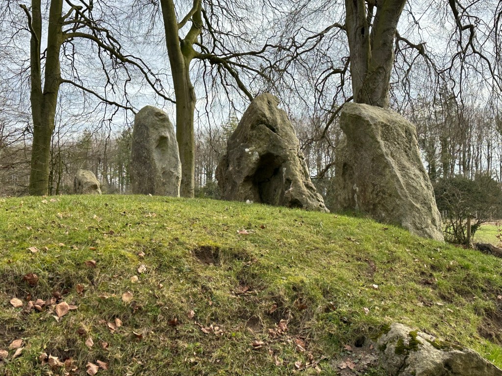 We walk on and cross and our path is almost through an avenue of trees, boundaries to our left indicate that we are approaching a significant estate. We turn again keeping woods on our left and pass Alfred’s Castle – a hill fort. We explore a little and I am able to pint out Ashdown House to the others. A doll’s house like building designed at the time of the plague for an aristocrat and his friends and as a base for hunting. https://www.nationaltrust.org.uk/visit/oxfordshire-buckinghamshire-berkshire/ashdown/the-winter-queen-and-the-history-of-ashdown-house