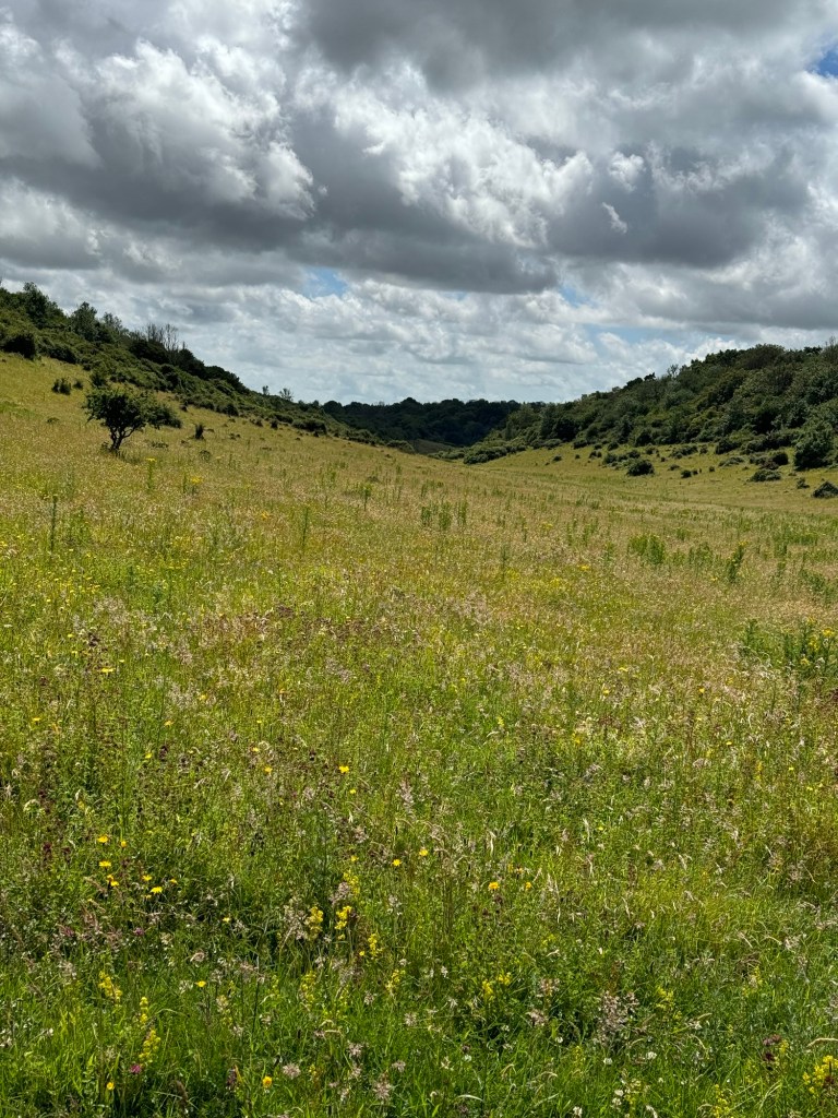 After a while it seemed to have paused so I set off. I’d been directed by the landlady to go between the church and pond and follow the footpath, which led to the Milky Way, and then joined the SDW. That way, same distance but avoided a steep uphill and a trudge along a road!