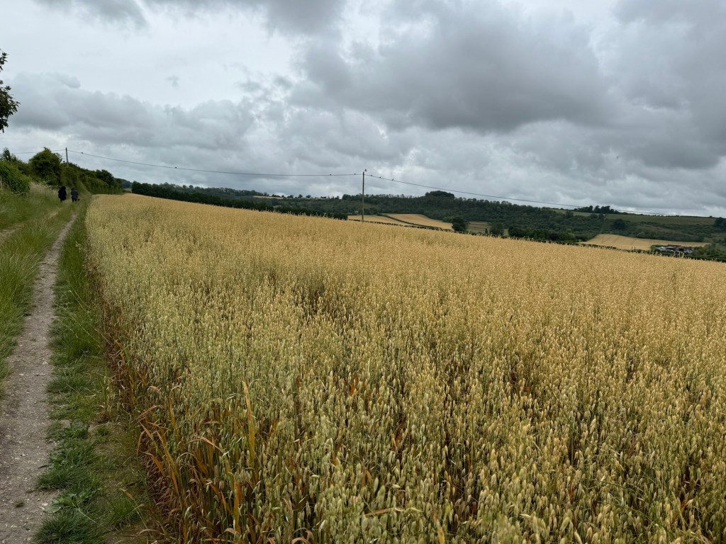 Up and over Gander Down and then quite a long stretch which was pleasant landscape but not much happening. Met two ladies who caught me up whilst I was trying to decide on the nature of a crop in a farmer’s field. They didn’t know either but one did recommend that the pizza was very good where I was staying the night- always good to have local information!