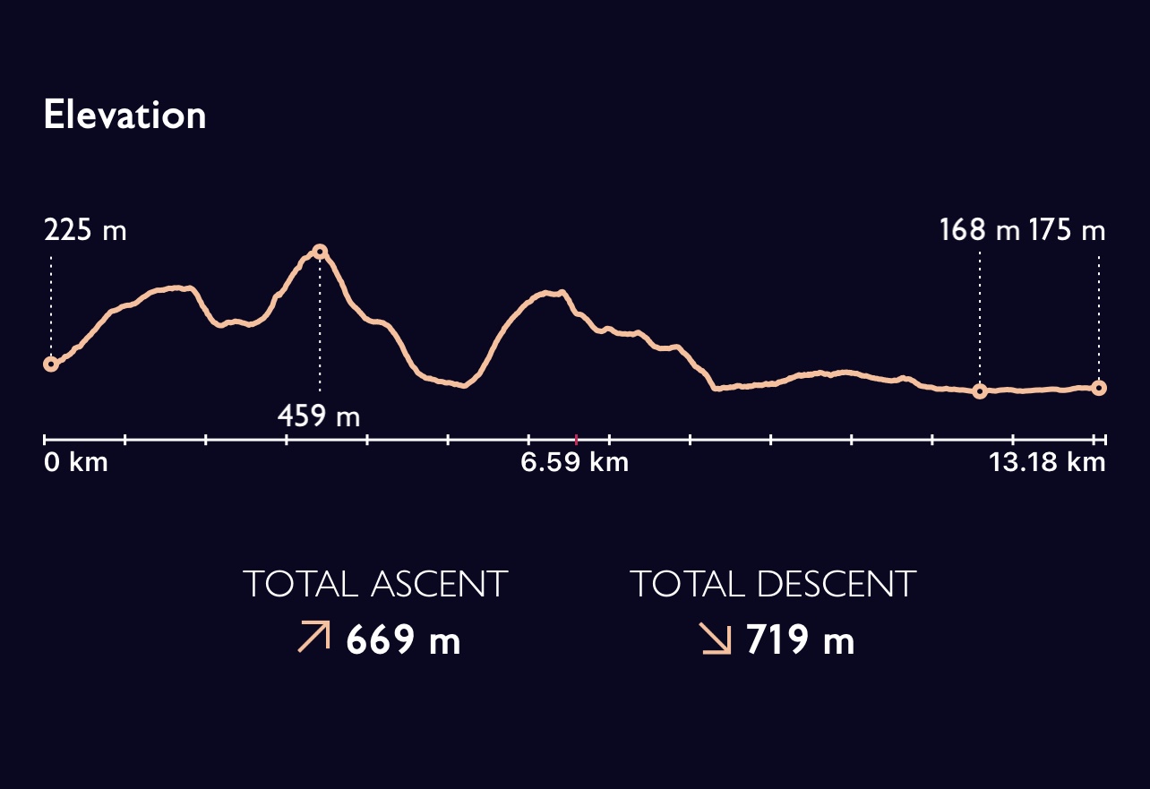 About 13 kilometres/ 8 miles which is hopefully a good option for those wanting a shorter walk.