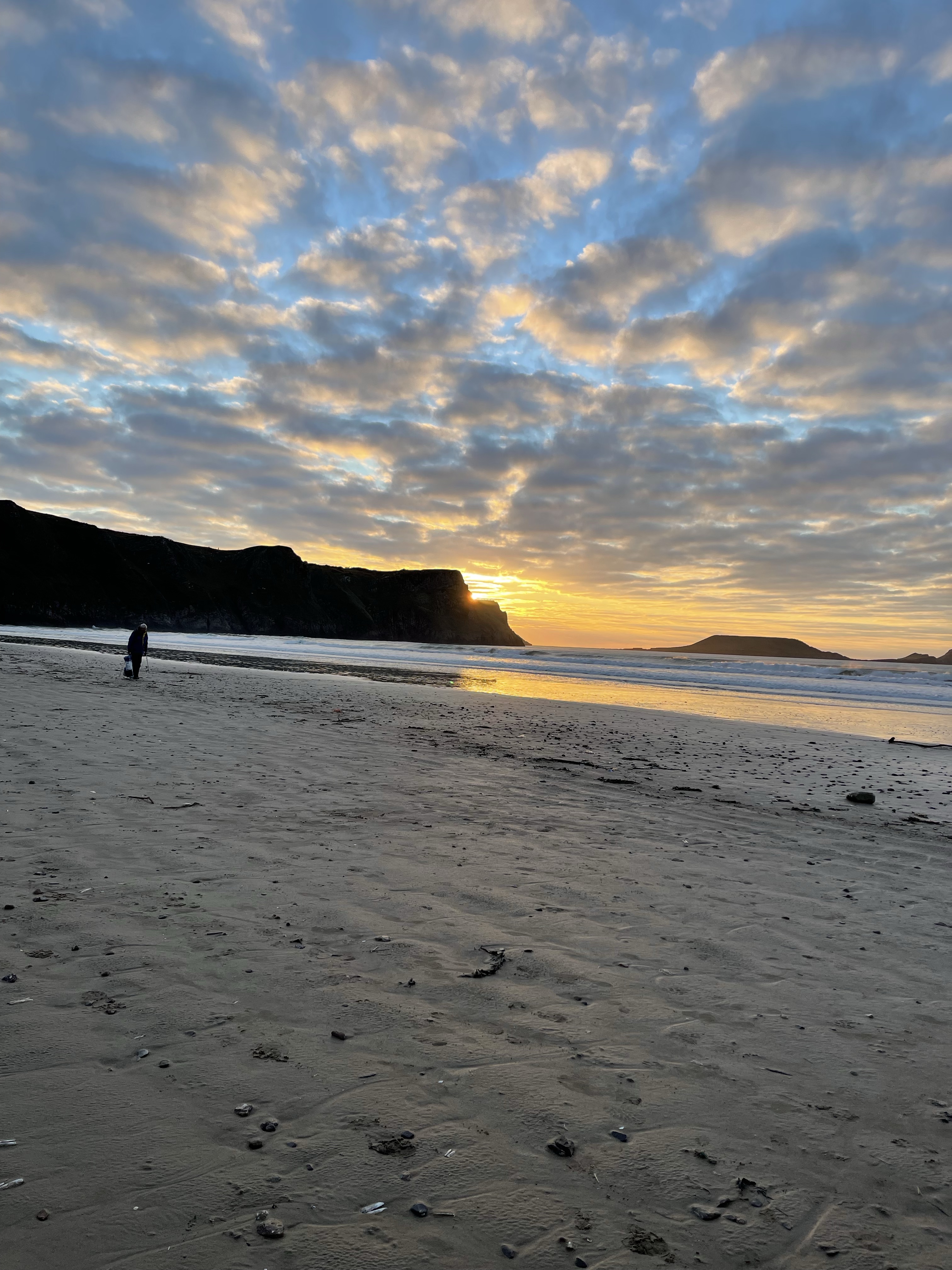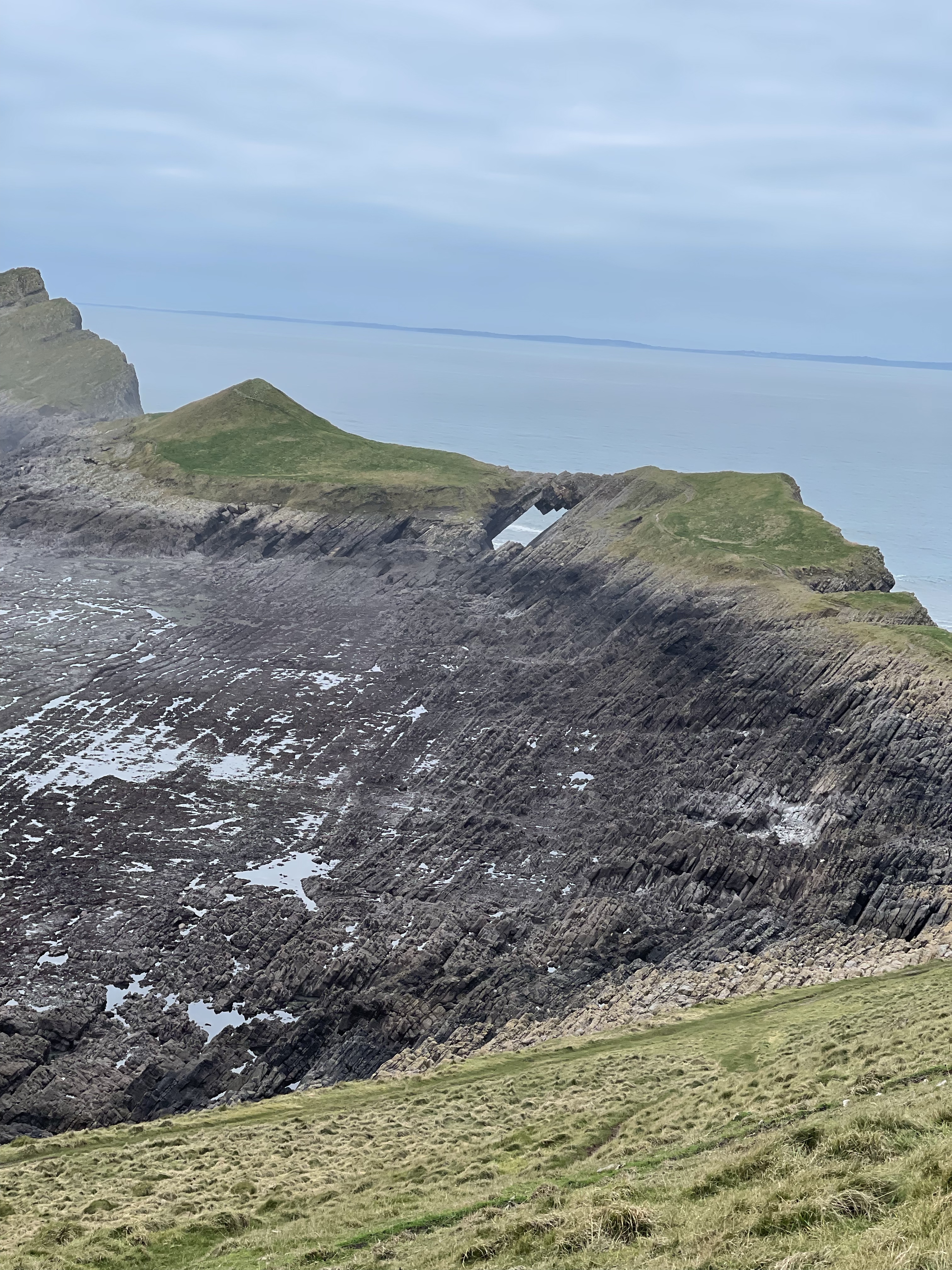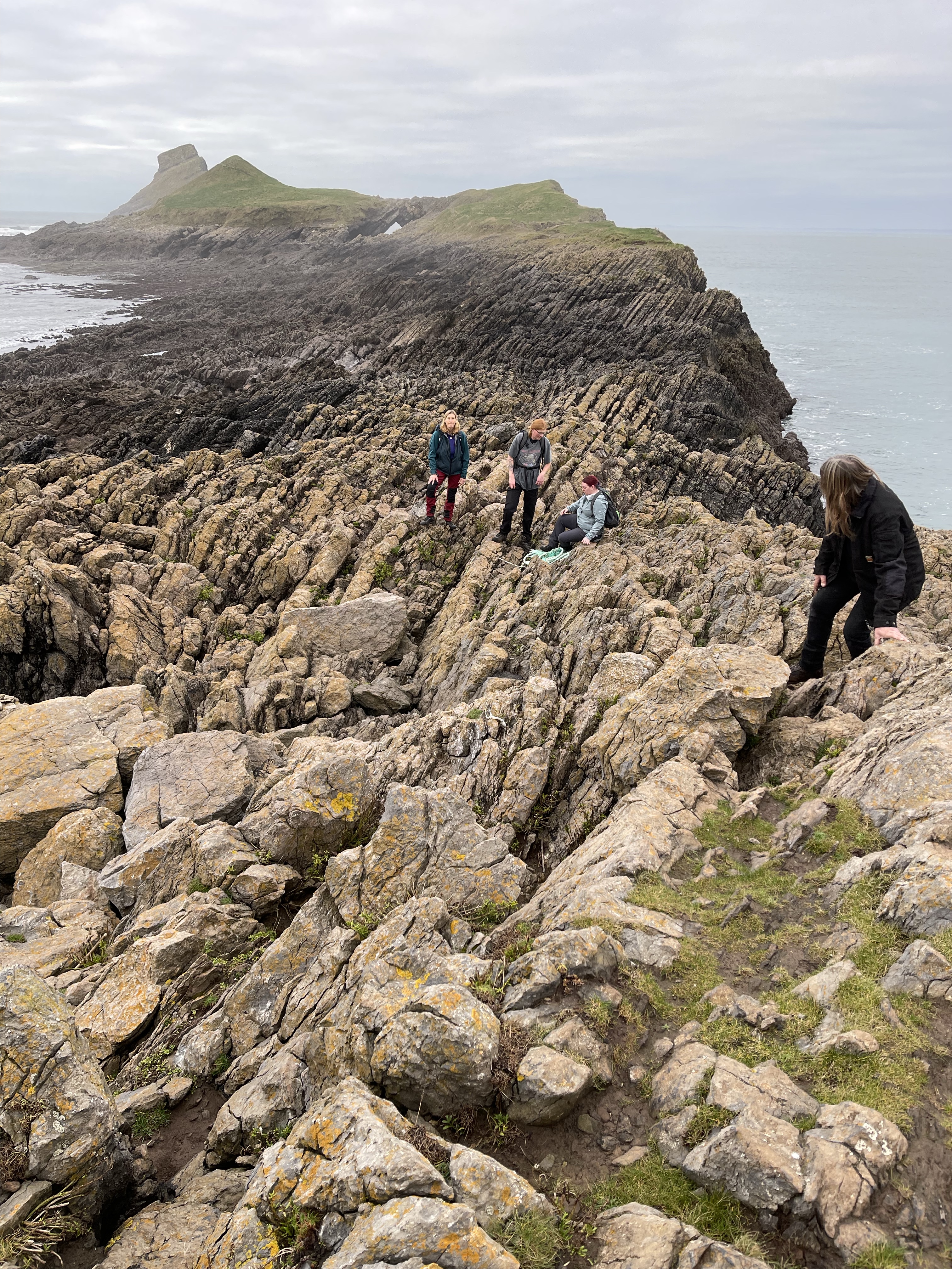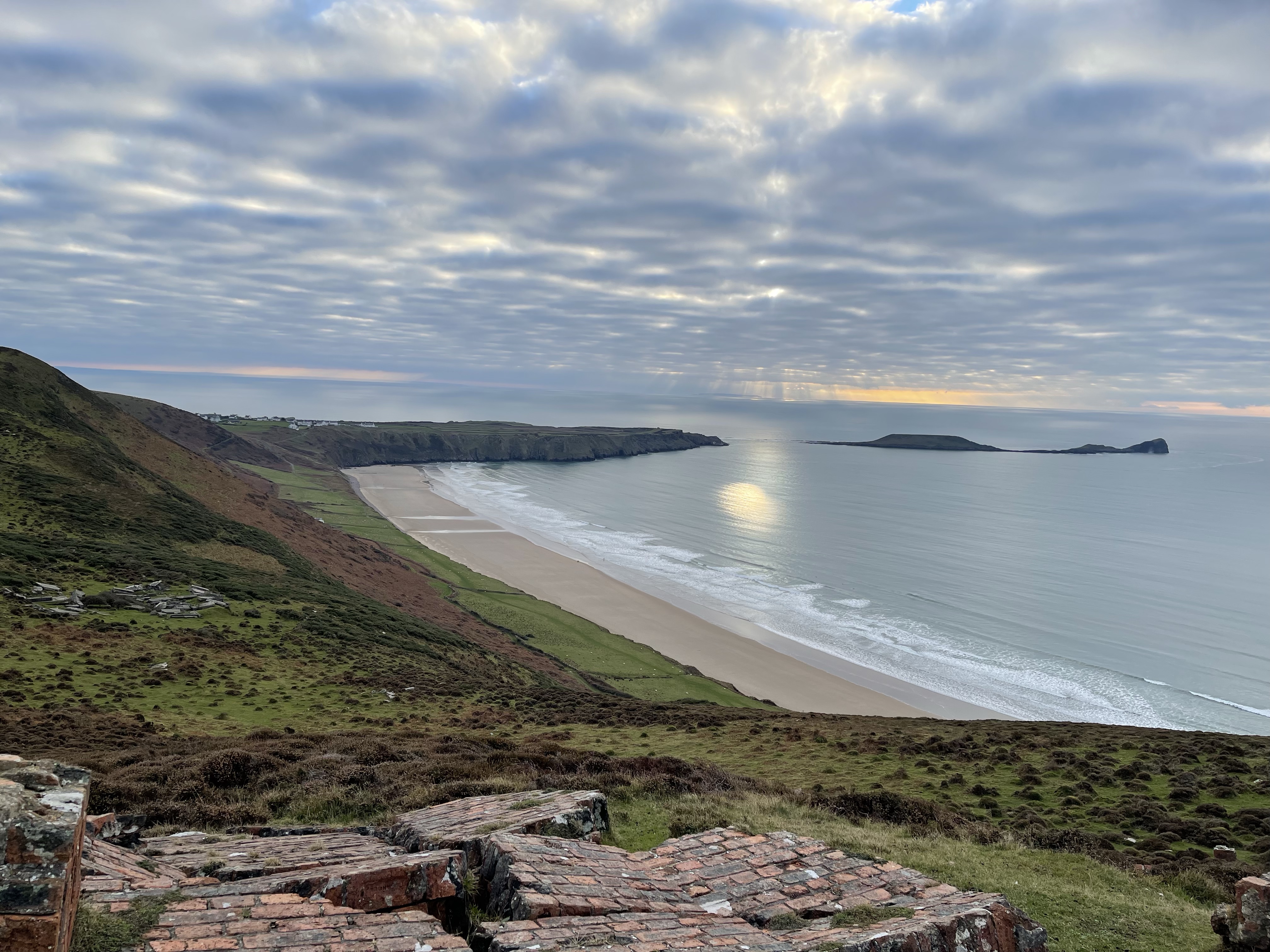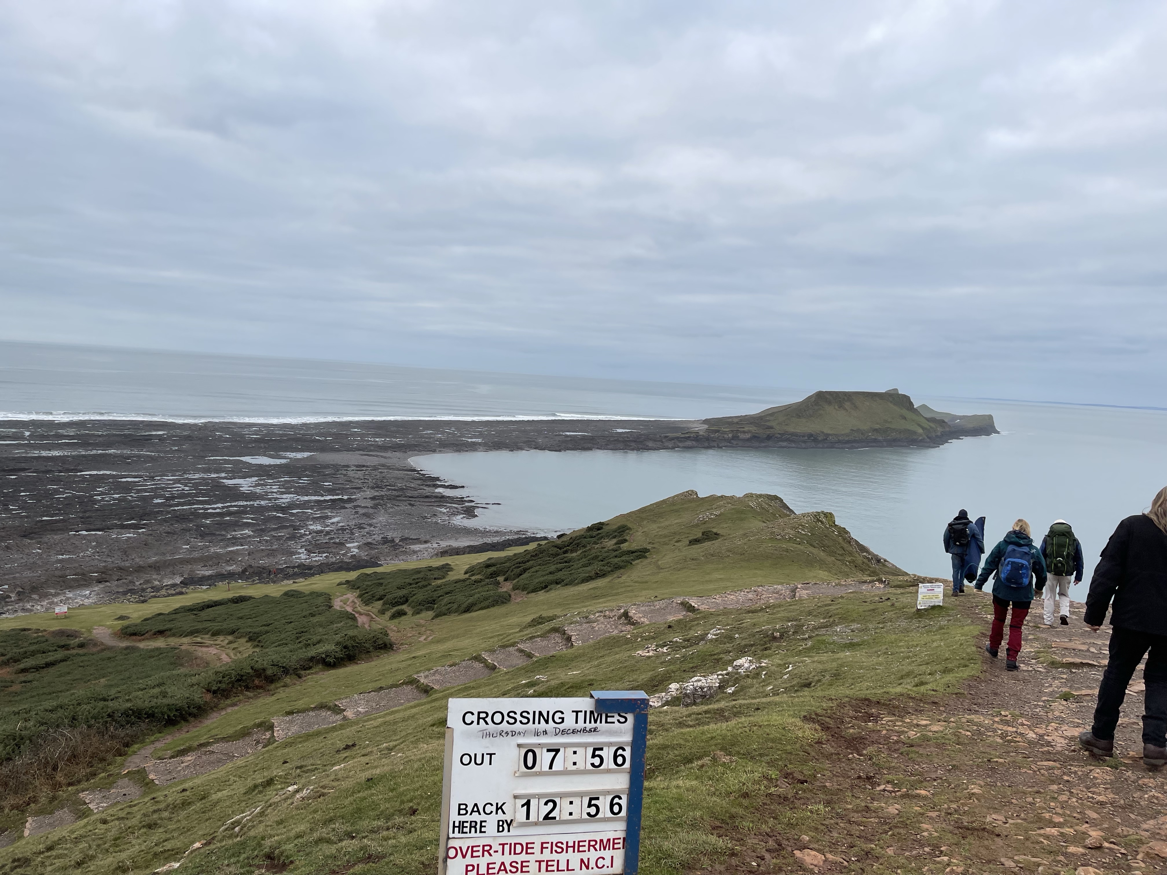 Off to. Rhossili in South Wales today, setting off in the dark. Annie has brought her husband along and there are two new faces for our group today. Bit of a doze on the way and we are ready to set off quite early. Timing is imperative for this walk as there is only a window of about two hours either side of low tide to be able to walk out onto Worm’s head.