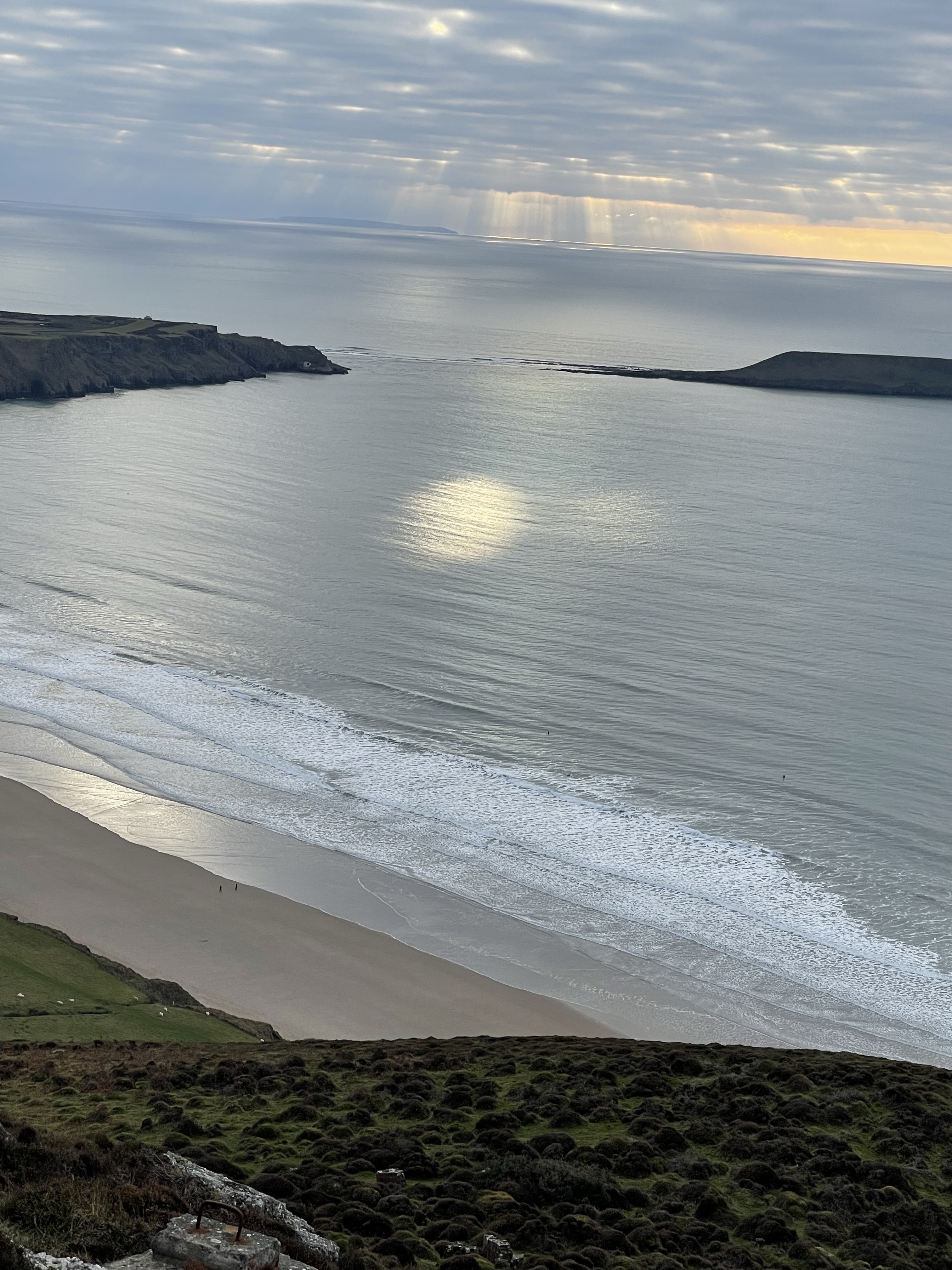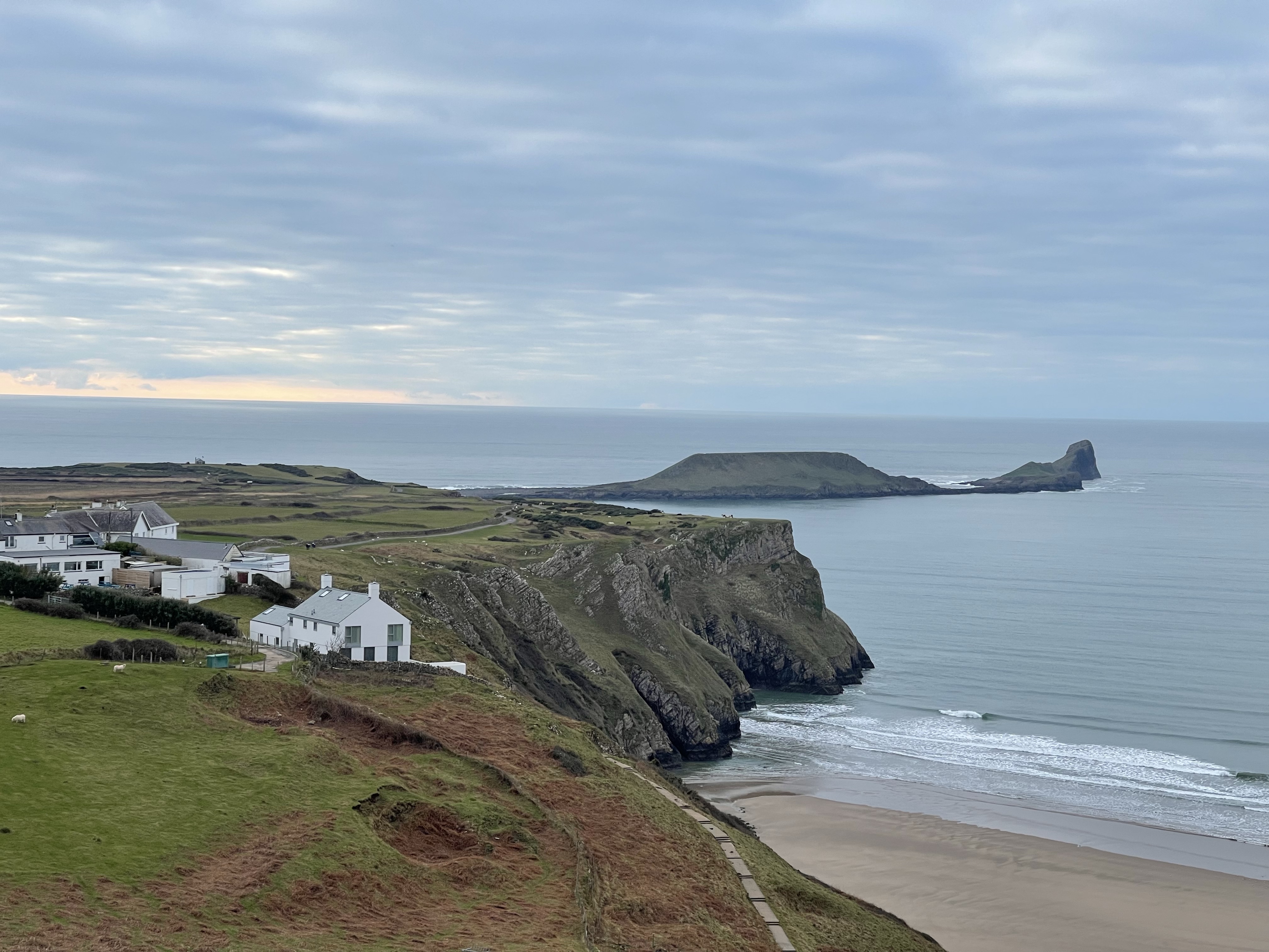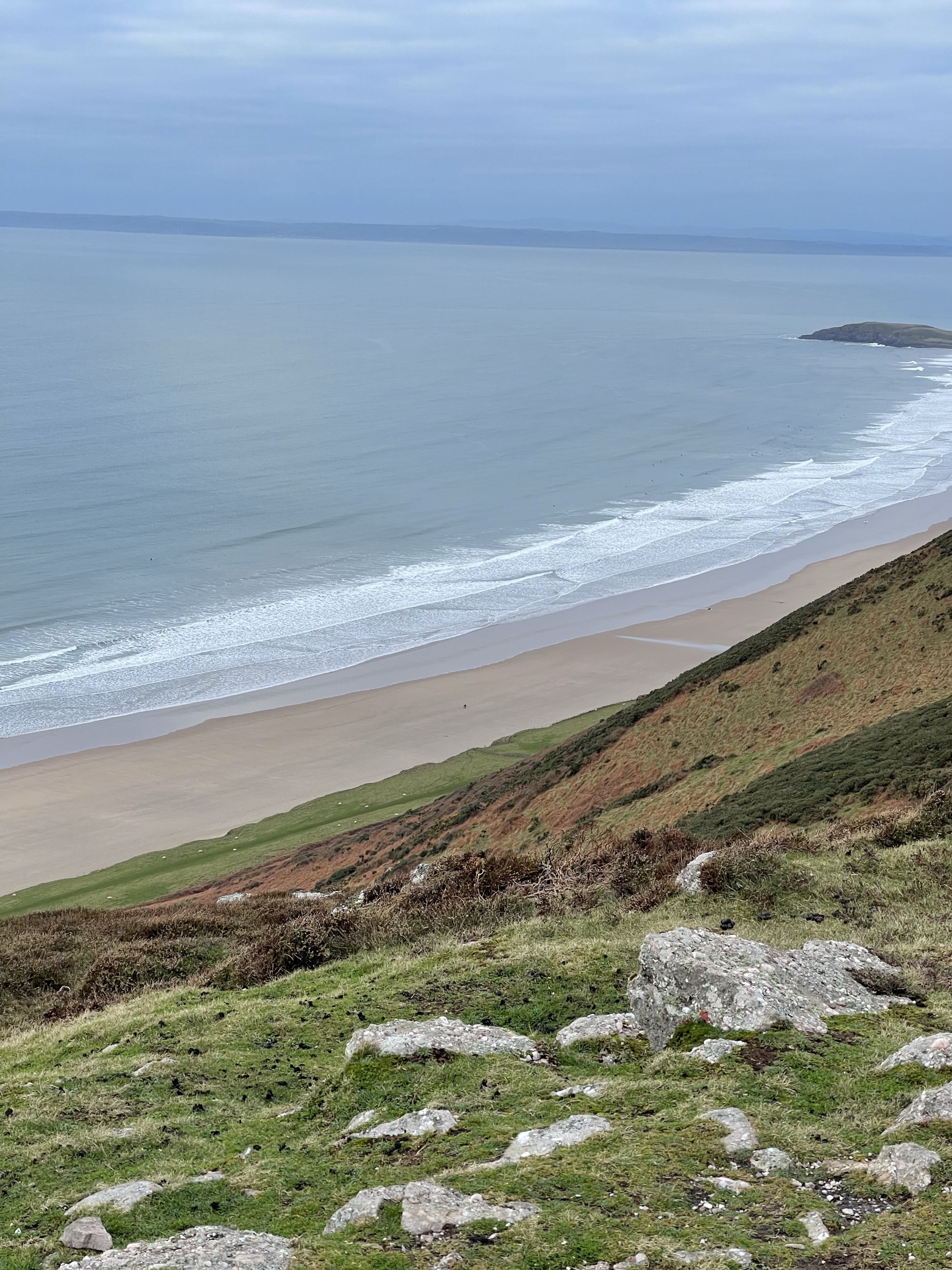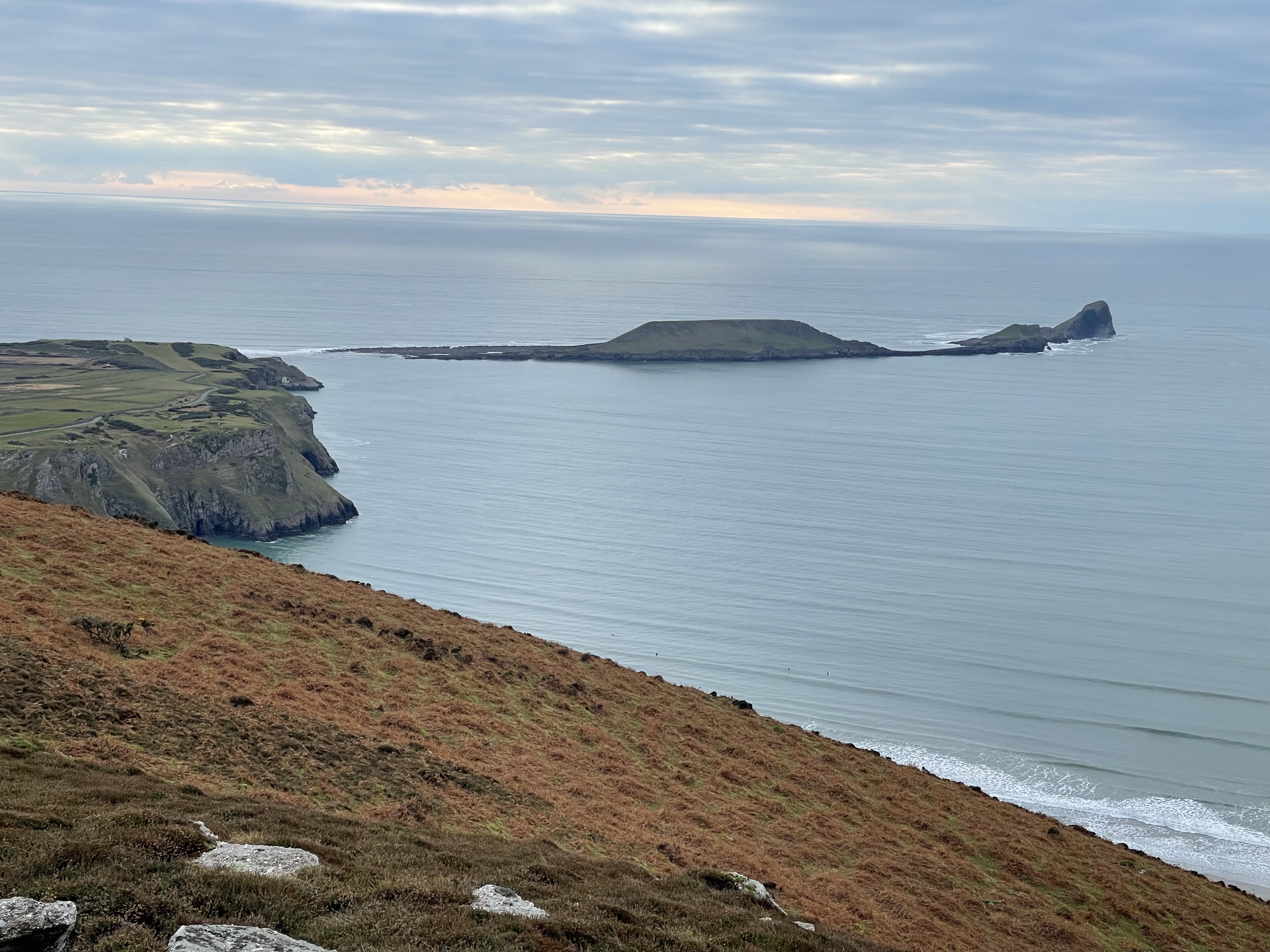 We are setting off at about 9.45 and the end of Worm’s head can just be seen jutting out into the sea.