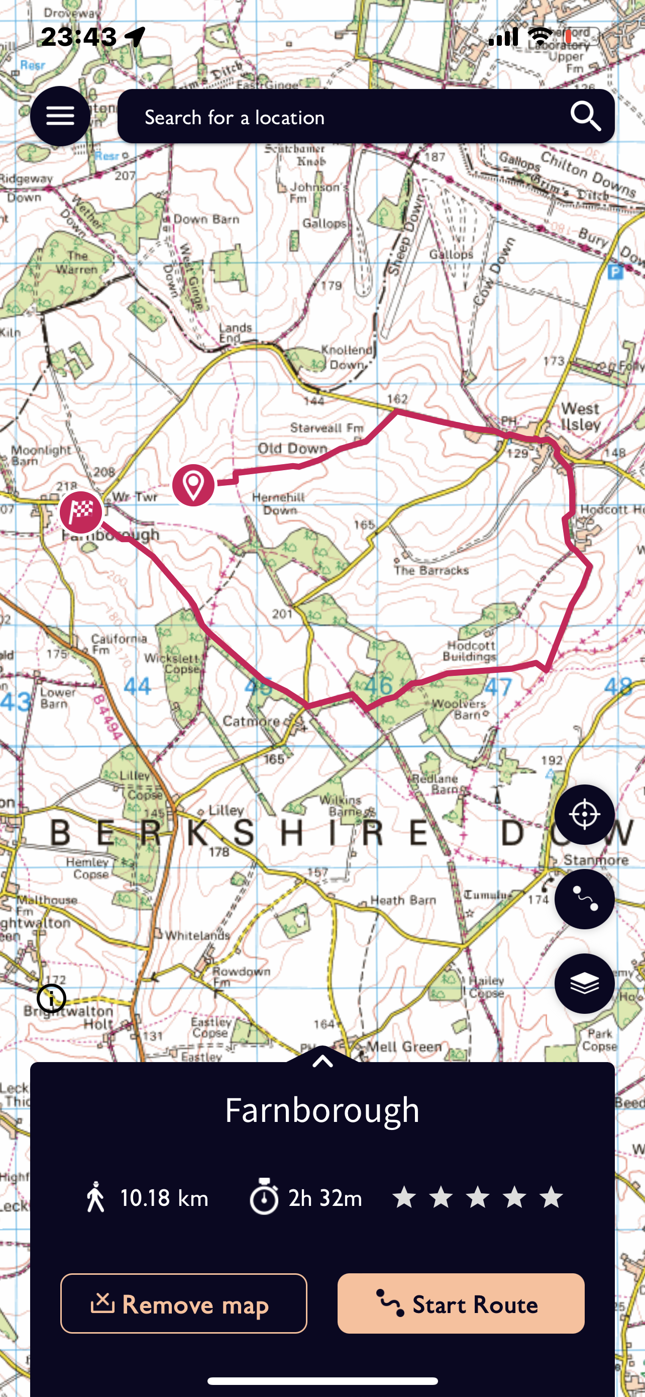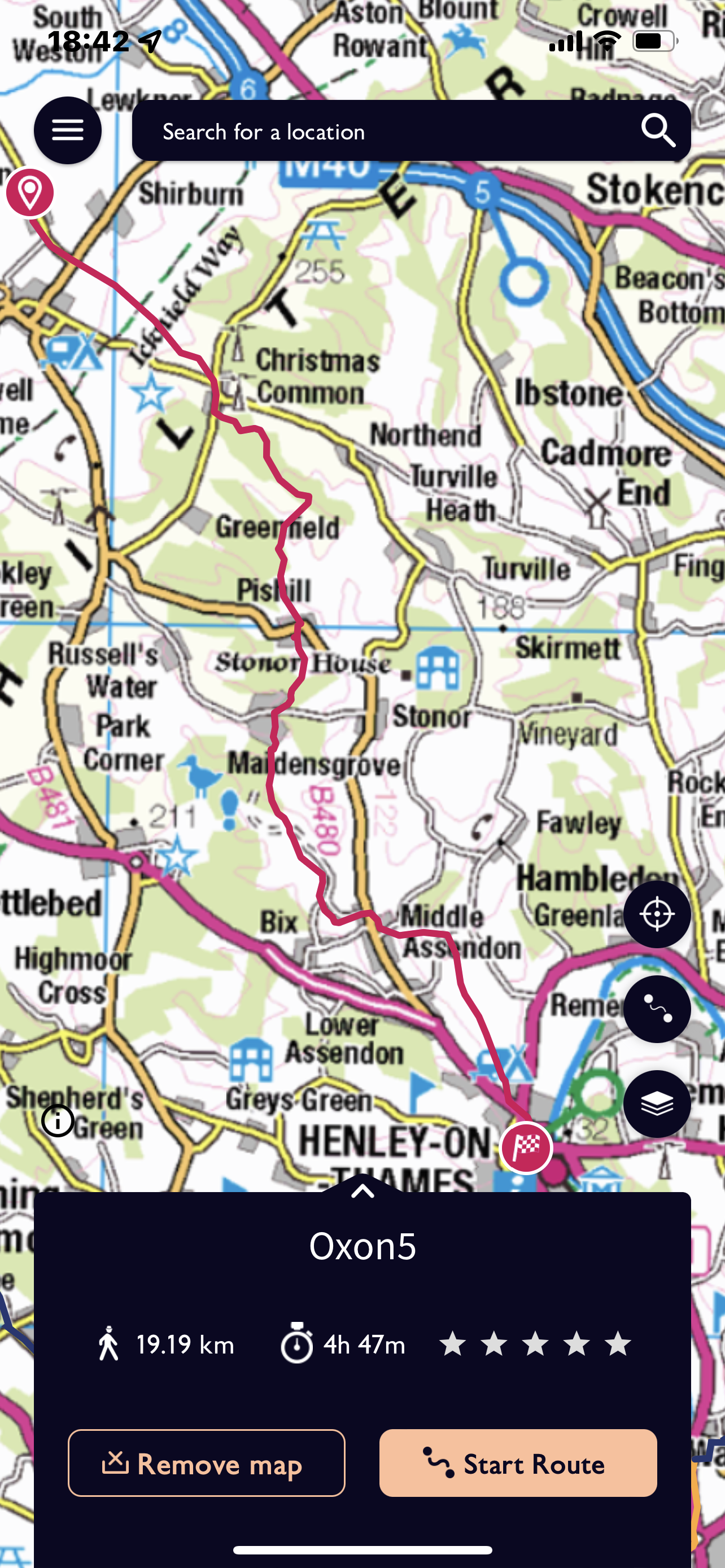 We are pleased to come out on a track which takes us down to some farm buildings which are positioned at the north end of Pyrton Village. We know that our lift should be somewhere in the village. It’s quite dark by now but several cars coming through the village so we phone to get the vehicle to us rather than walking through the village – we’ll save that for tomorrow. We did get a little rain about half an hour before we stopped, sufficient to put a coat on but almost stopped by the time you’d zipped up!!