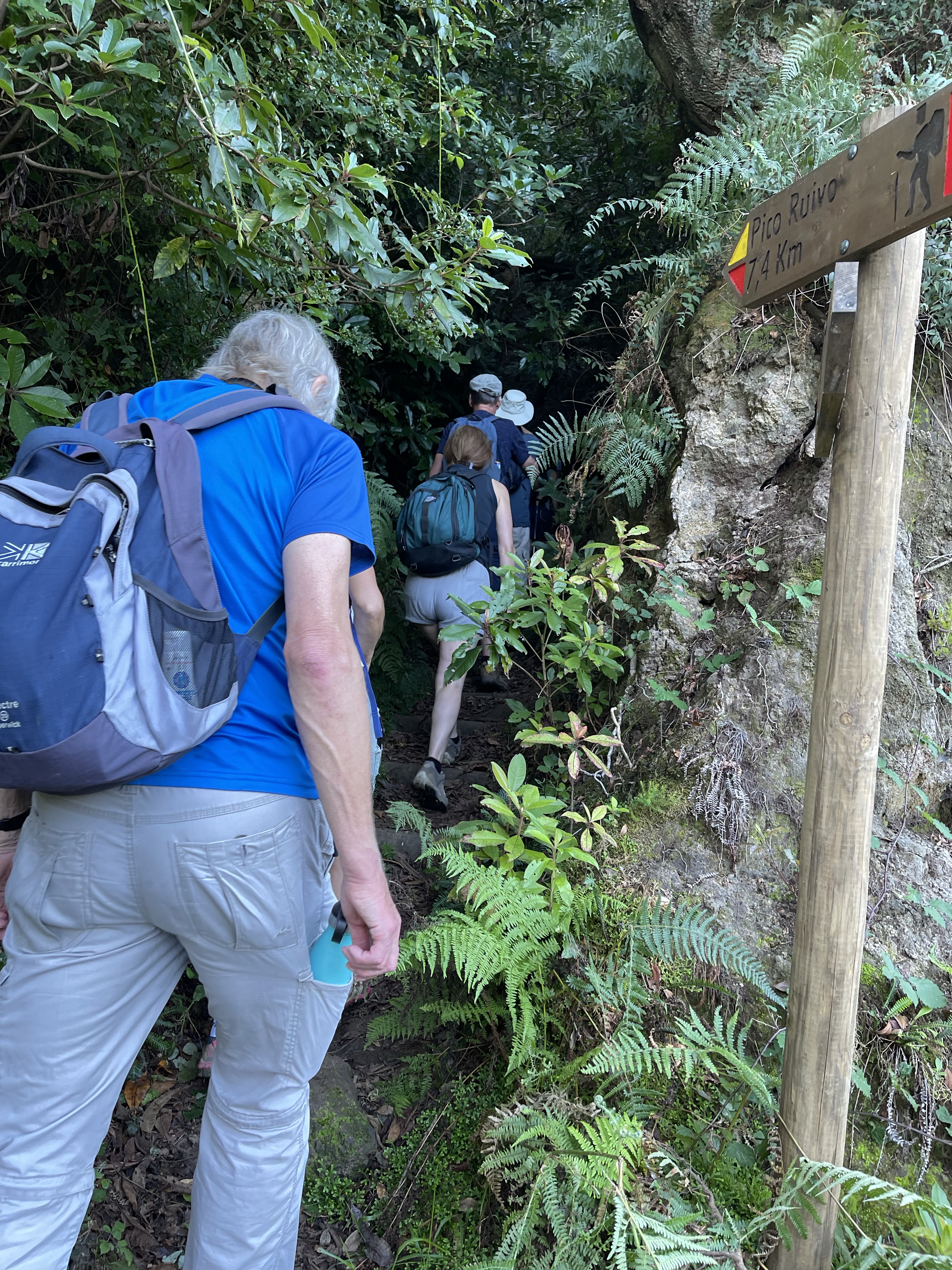 Today’s walk started at the village of Ilha which was the reverse of the original advertised route. This meant that very quickly we were walking steeply up hill with steps cut into rocks and with a mix of mud and stones. Rather unrelenting sections meant we just kept going up! The use of one of my poles proved very helpful.