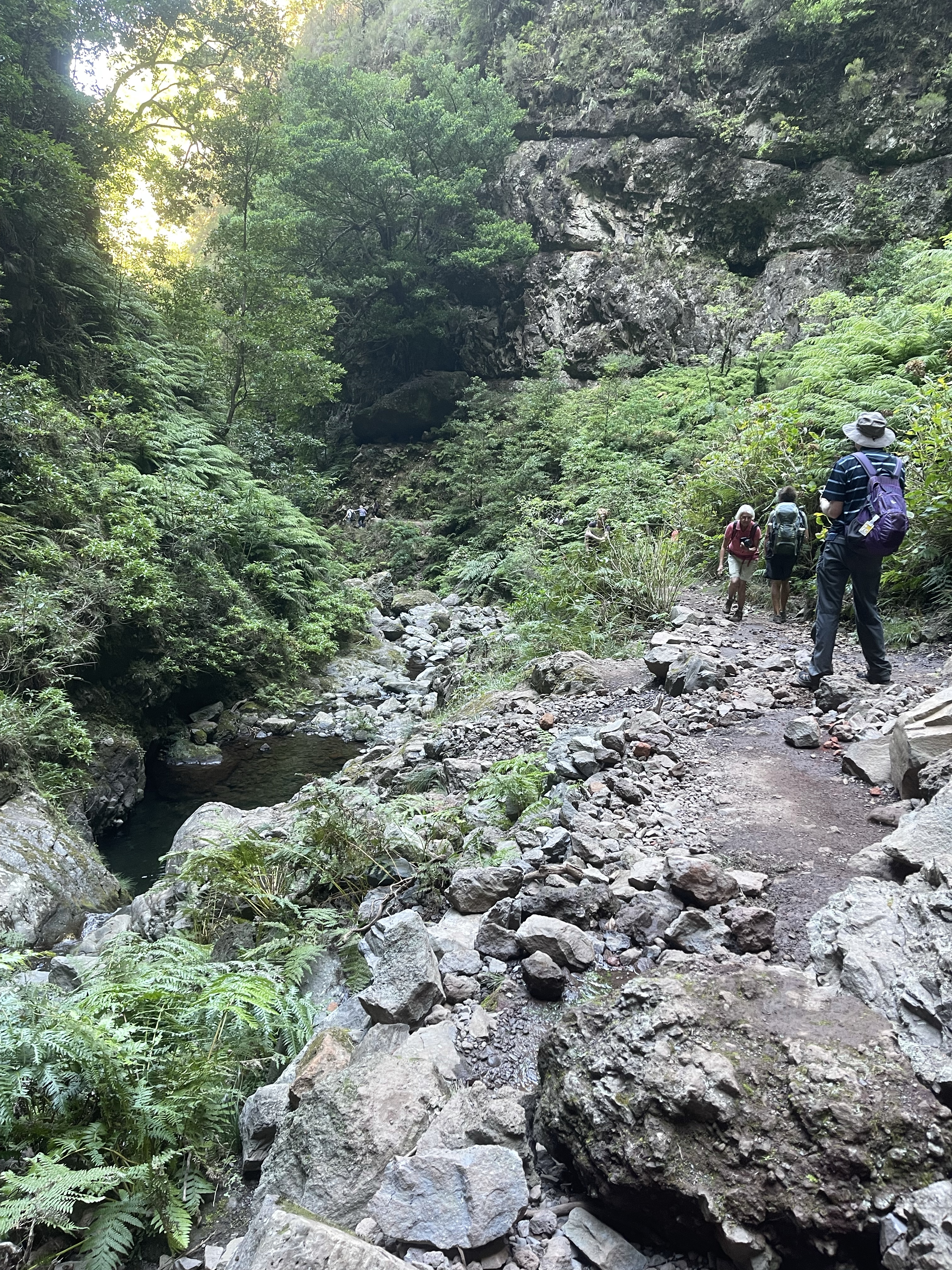 A slight change of direction after lunch and a rather more populated area – we are now following the Levada do Risco and we are off in search of the waterfall which provides the feed for this Levada.