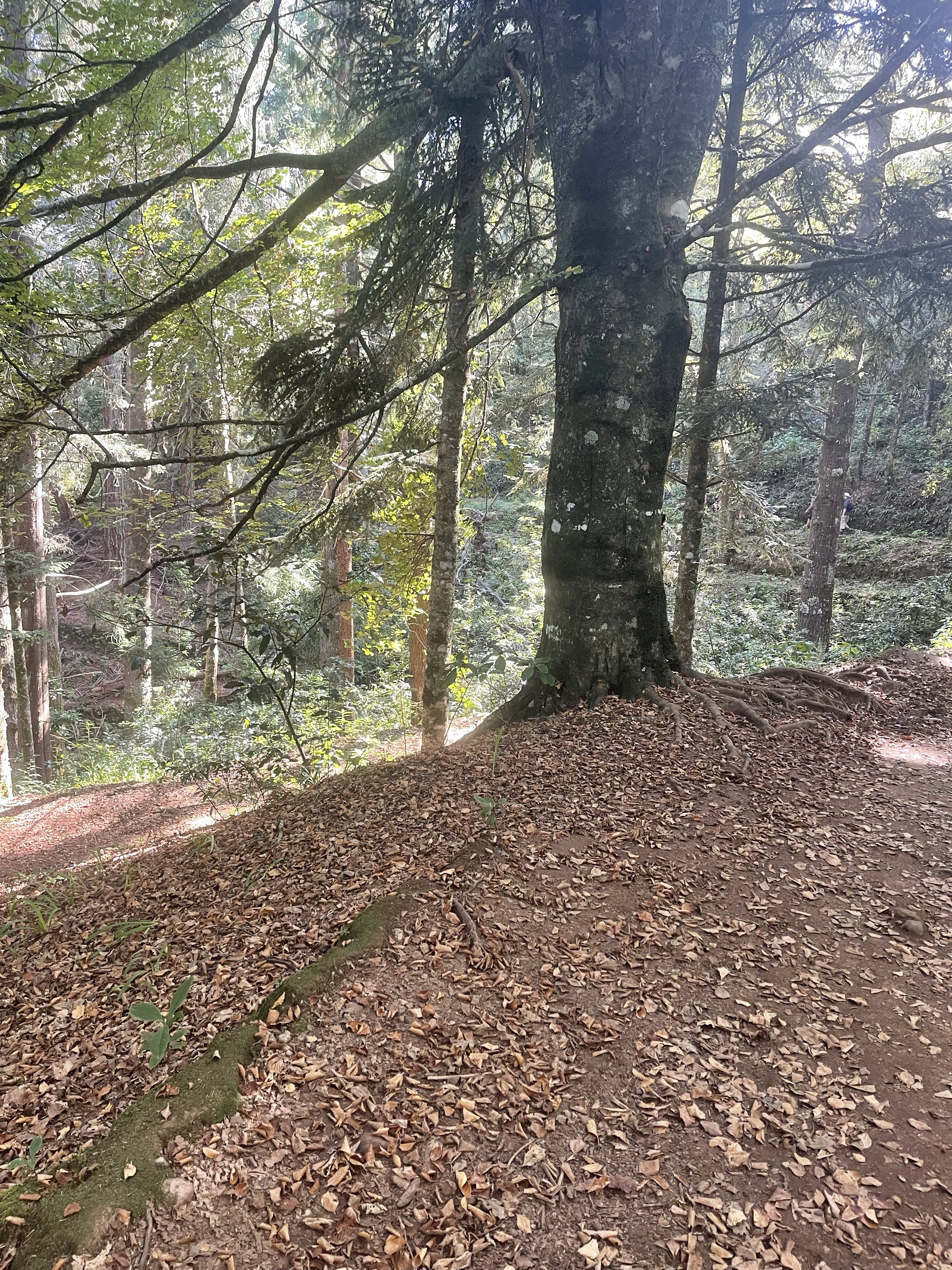 After quite a struggle and continuous rain we rejoined the old original path which wove it’s way to the top of the highest peak – we’ll eventually! A much more pleasant path, more natural and with a gentler ascent.