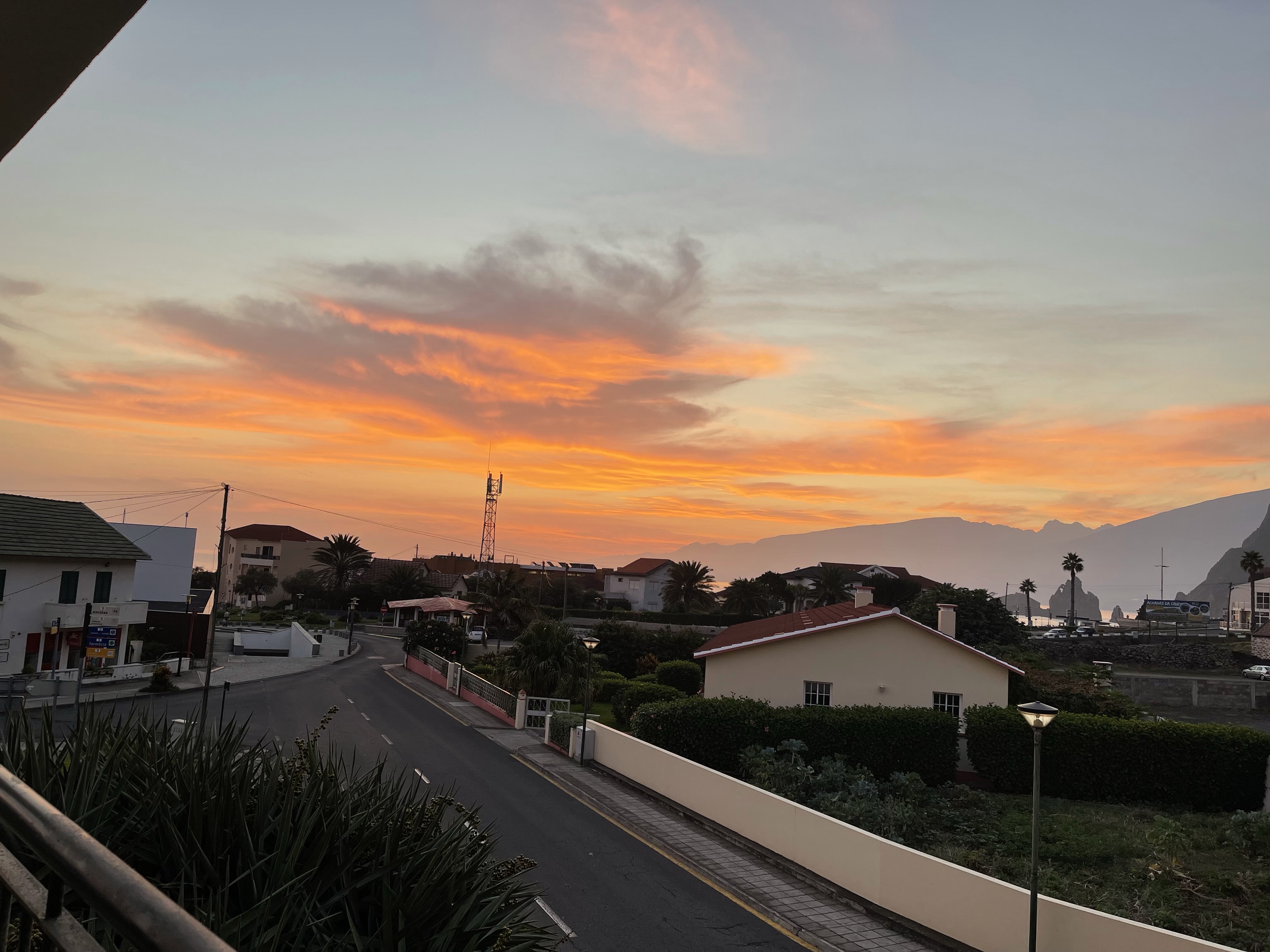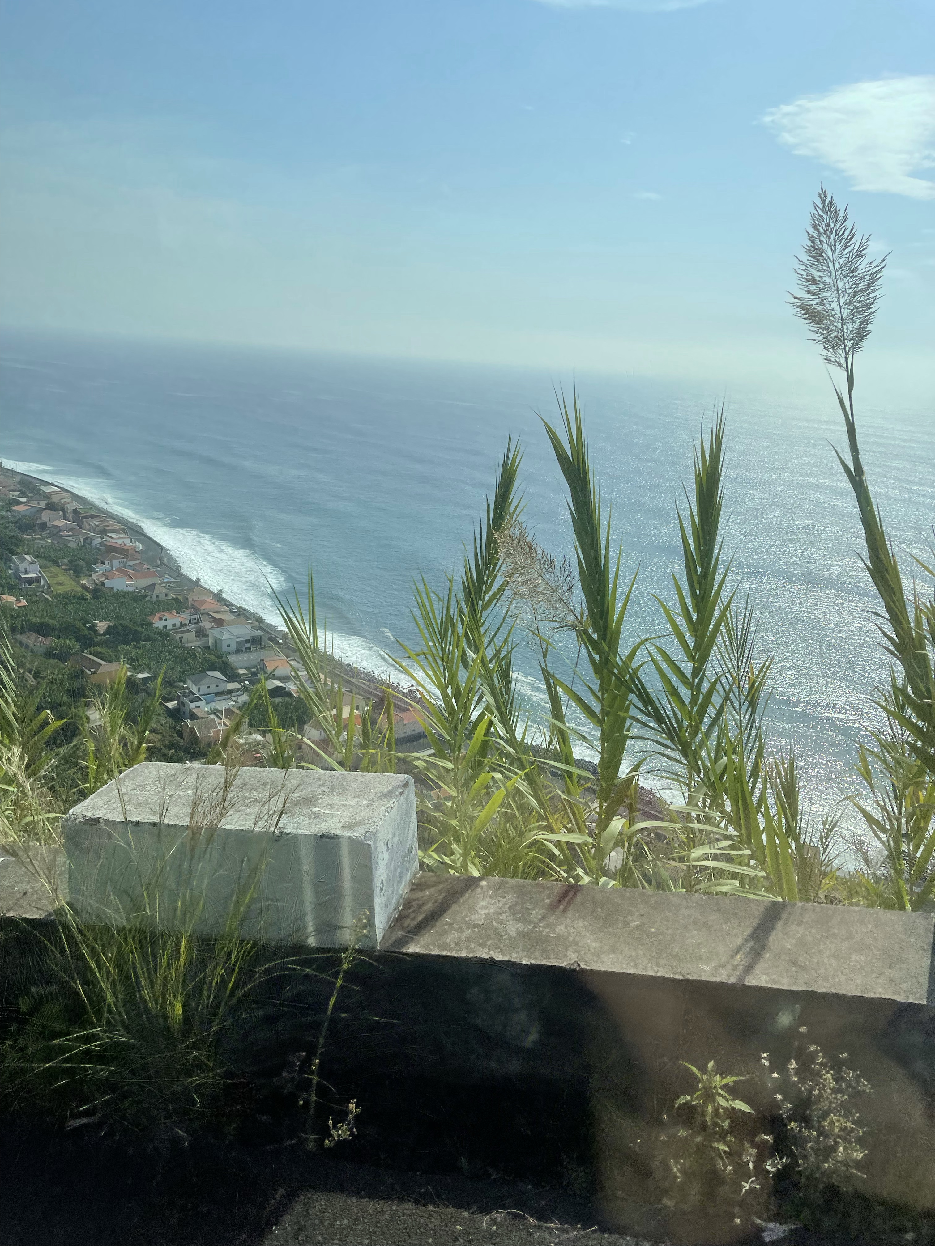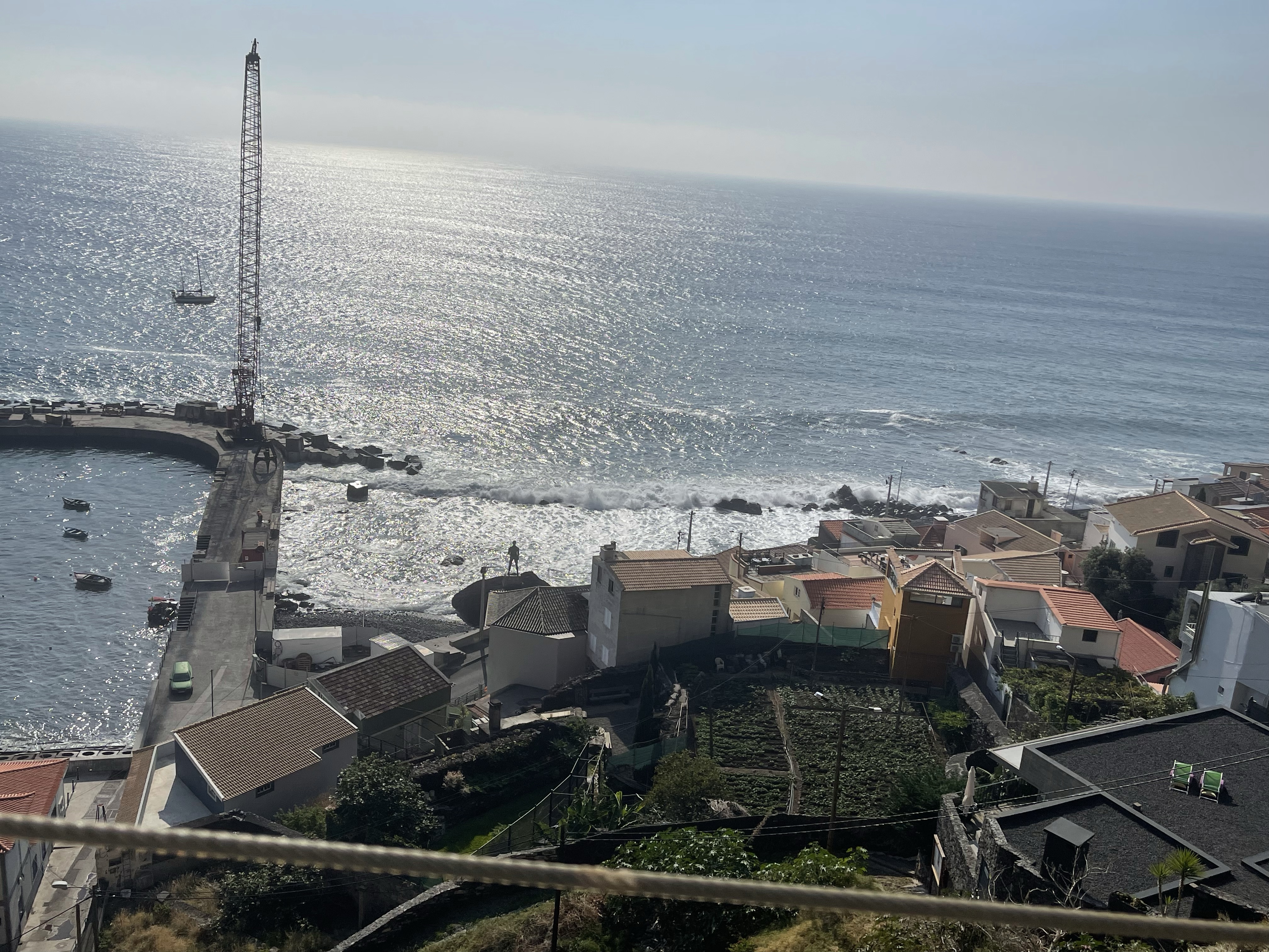 Eileen and I started to walk up the hill to at least experience a small section. It started at street level in the town of Paul do Mar with a discrete passage way and typical basalt path, very black and polished looking. It soon changed to something much rougher and went steeply up hill. We aimed first for a veranda we could see beneath the rock face. Having met Liz there she advised us that it was up a bit and flattish around the next corner! Another member of the group appeared at this point and we decided to return back down to sea level and a beer!