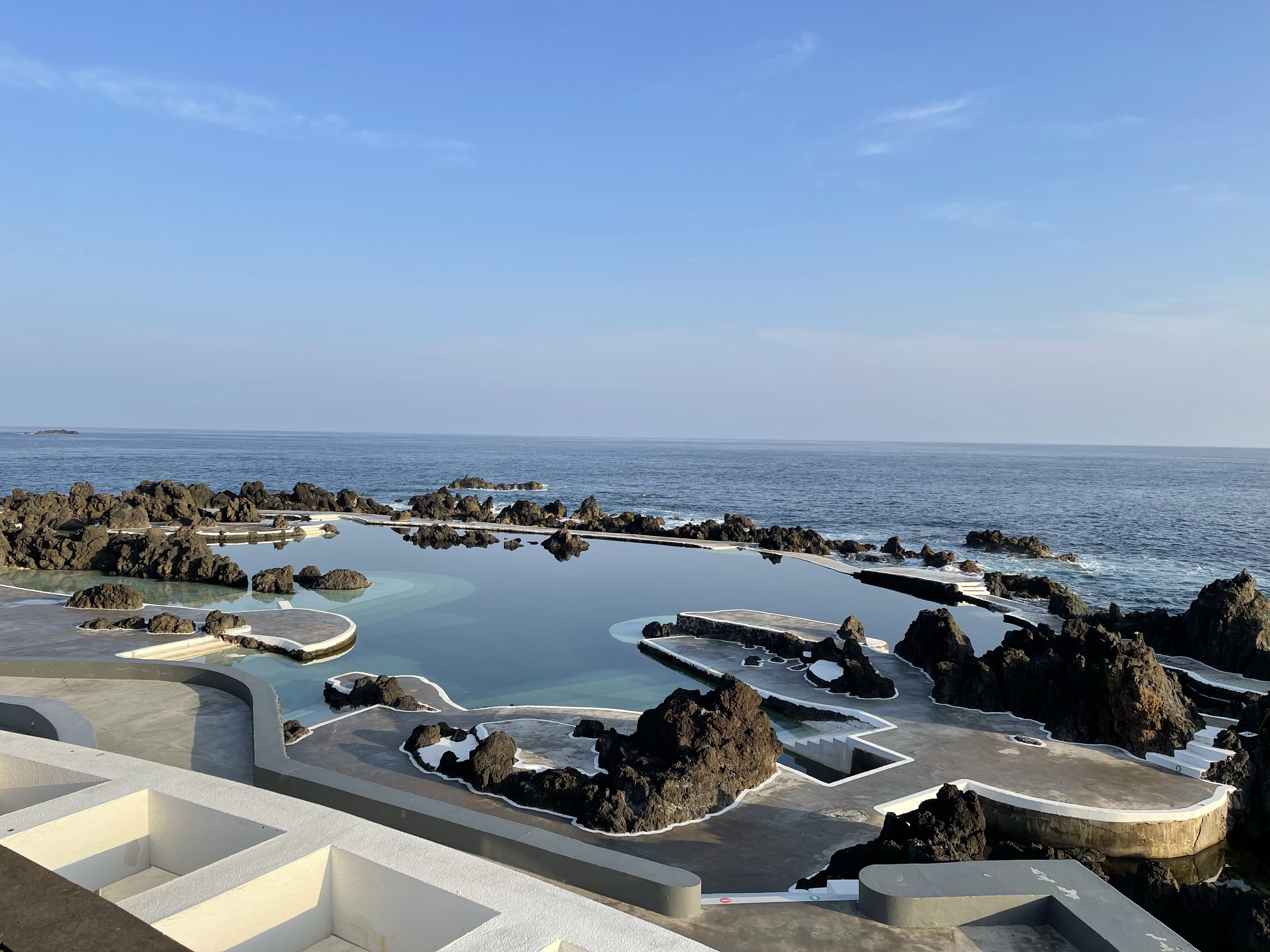 To start the day the sky greeted us with colour as the sun rose over the sea and I looked out from my balcony. A quick look also at the pools filled with sea water.