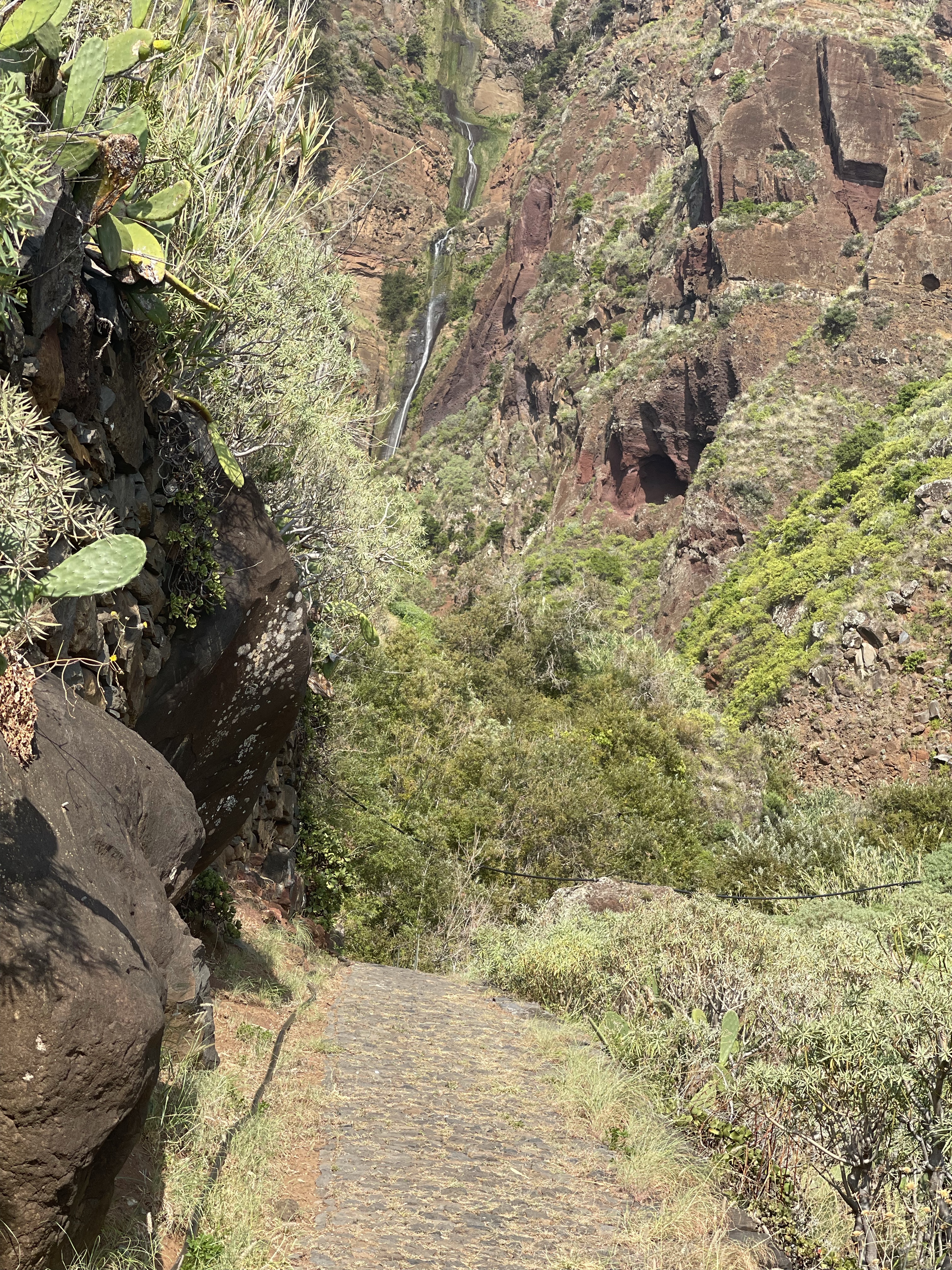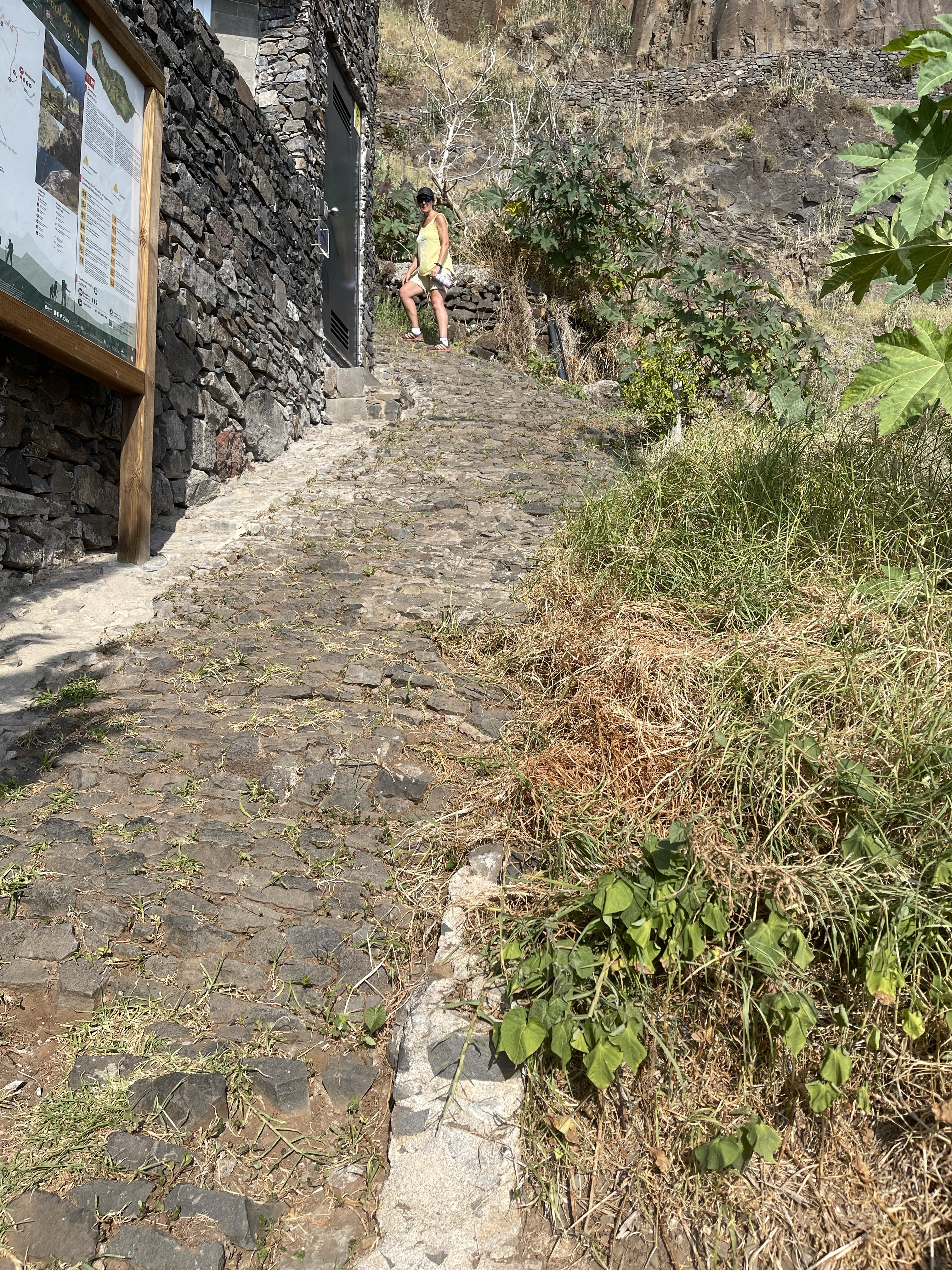 There was an option to walk down a very steep path which lasted for about 1.8 km and descended 500m. It was a special design with curved steps which the locals used to use to transport with the wicker baskets, featured in walk 5.