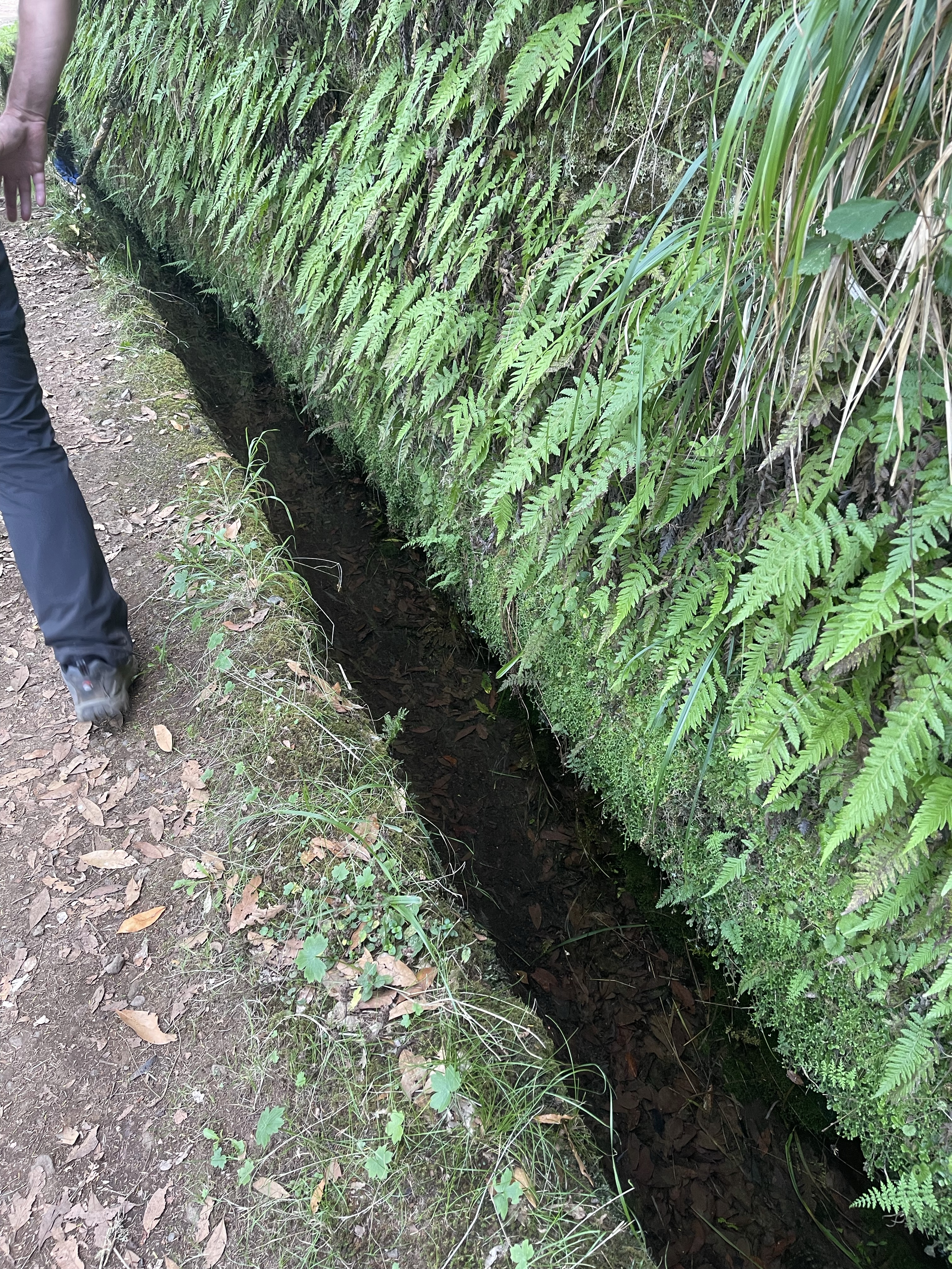 There are many different types of ferns on the island and many of the Levadas also have wet ‘walls’ above them. Moisture from clouds runs into these water courses. After a gentle start the path leads steeply down to our view point.
