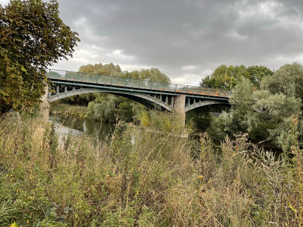 Having parked at Rye Farm we crossed the first part of the bridge and went down the steps to meet the path which continues under the bridge and through the meadow which is opposite the ‘Old Gaol’ and the warehouses and Malthouse. Travelling the length of the river is making me consider it’s historic importance for the transportation of goods. A glance back at the bridge!