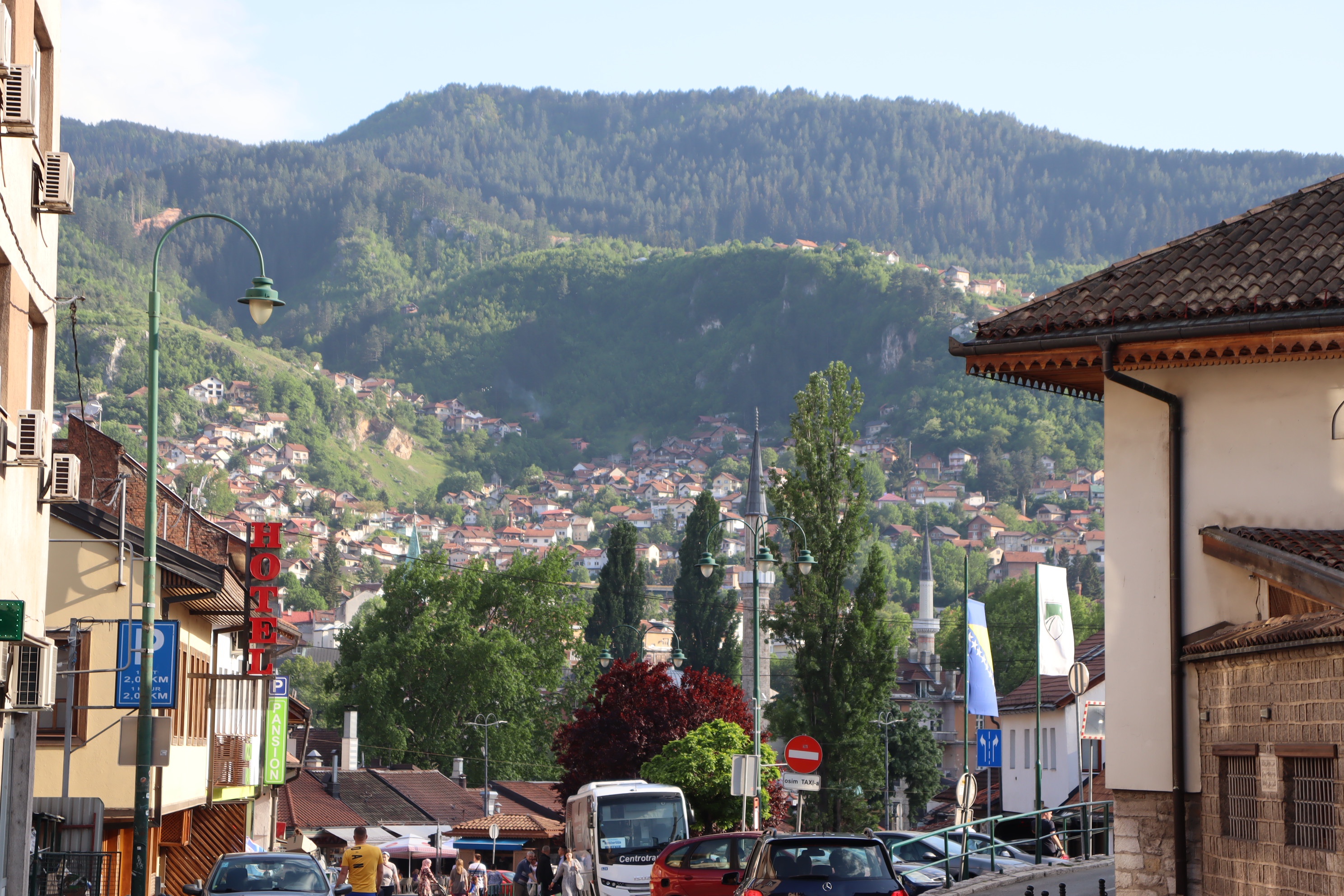 Time to walk back through the length of the old city – many of the streets are named after the craftsmen that worked in the area. We are looking for the copper ware street that we were taken to the day before. It proves harder to find than we initially thought – we did find the street of book binders on the way! After eventually finding the street amongst a maze of small lanes it was time to walk back passed the ‘Sebilj’, the correct name for the water fountain. Then back up the long hill to our hotel. The one advantage is that the view back to the city is good! Quite a full day but very worthwhile.